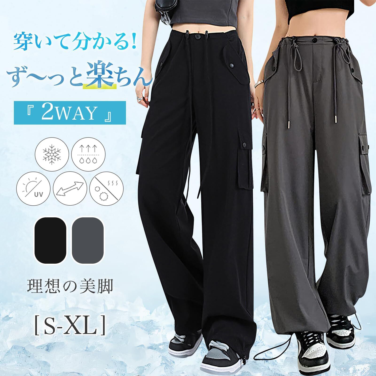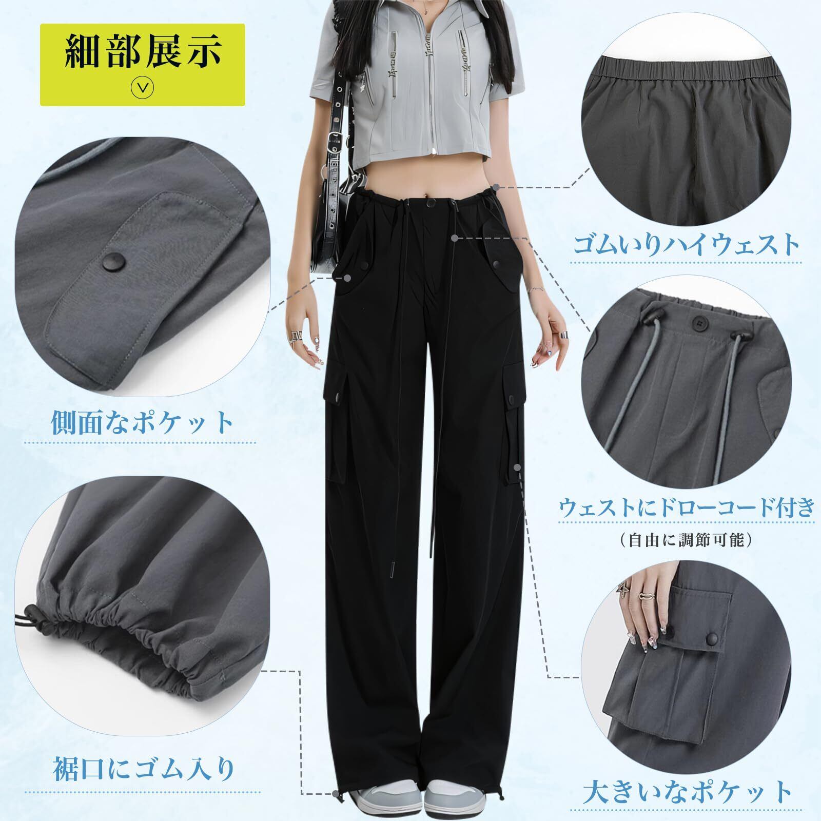 [Kayiyasu] カーゴパンツ レディース ワイドパンツ トレッキングパンツ 夏 接触冷感 速乾 ストレッチ スポーツウェア 大きいサイズ 薄手 日焼け止め UVカット ポケット付き ゴムウエスト 登山 秋