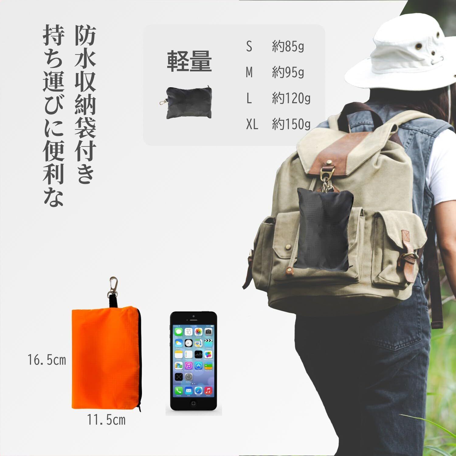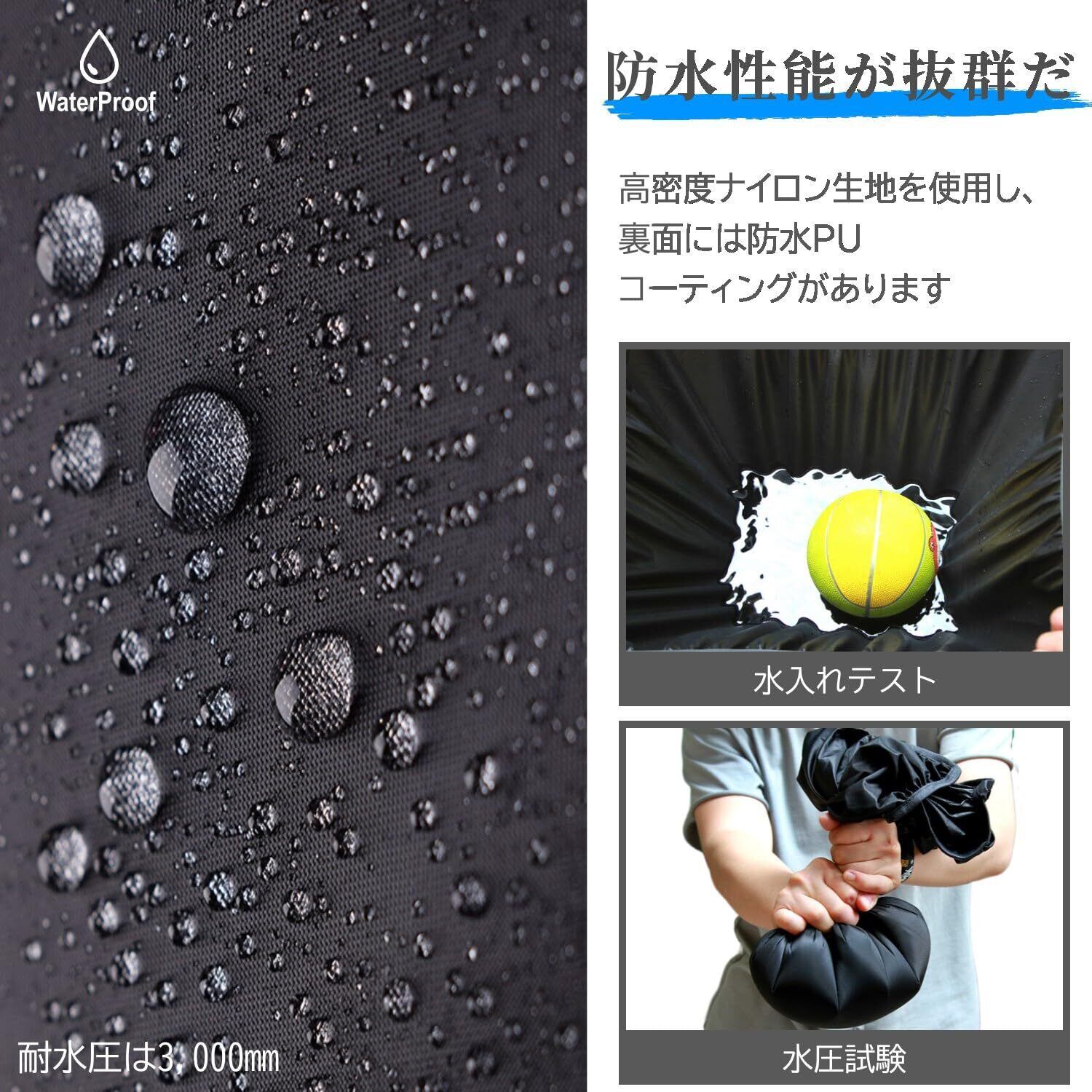 【軽量·耐久·持ち運びに便利】「リップストップ加工」を採用した生地は、薄くても引裂きに強いの特徴があり、優れた防水性能と強度を兼ね備えた製品です。本バックカバーには収納バッグが付属しており、コンパクトに折り畳むことができ、小型軽量で、通勤、通学、旅行、アウトドアスポーツで簡単に携帯することができる。急な雨にもサッと取り出せて安心便利です。