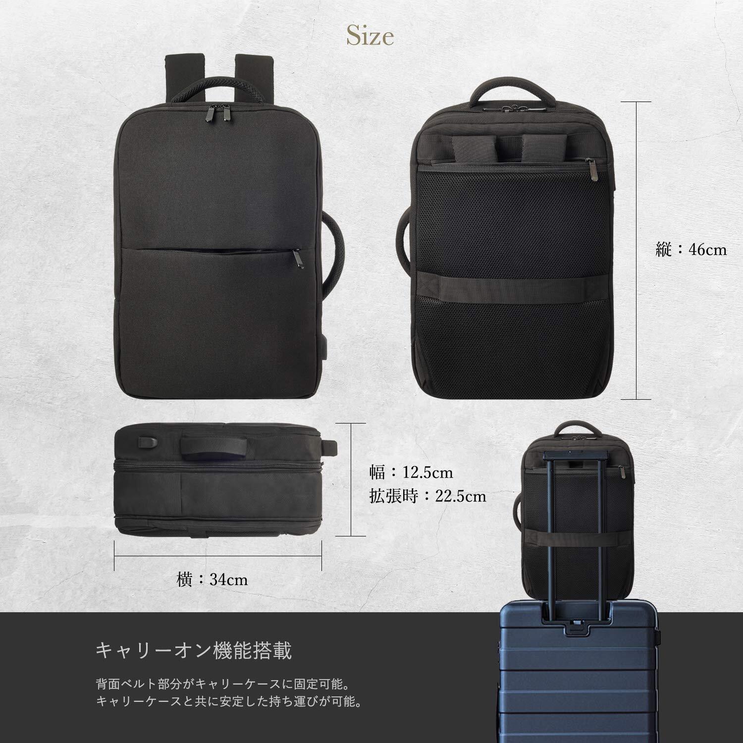 [グレヴィオ] ビジネスリュック 2way 3way 薄型 大容量 拡張機能付き 撥水 キャリーオン 軽量 リュック メンズ バックパック USB 黒 グレー ネイビー ブラック