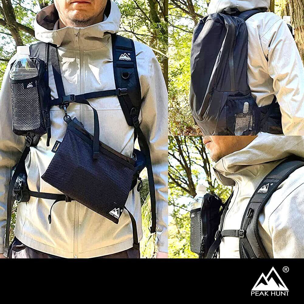 バックパック(サイドポケット付) 20L 超軽量(UL) 撥水 防水 メンズ レディース ハイキング トレッキング ブラック 黒 折りたたみ 旅行 トラベル 防災 PEAKHUNT(ピークハント)