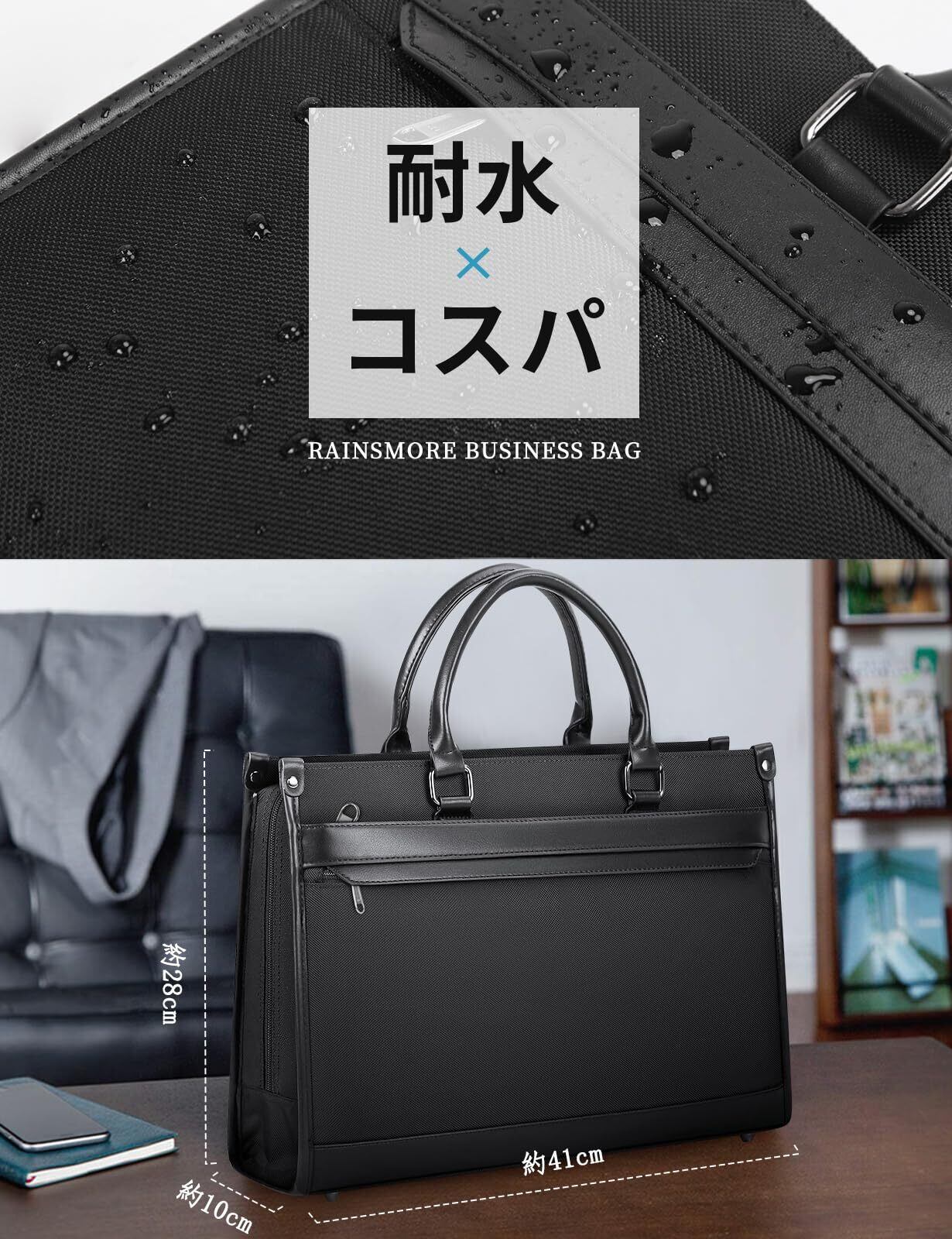 [RAINSMORE] ビジネスバッグ 大容量 就活バッグ YKKファスナー 15.6インチ 撥水 A4 自立 2way 出張 通勤 リクルートバッグ メンズ ギフト プレゼント