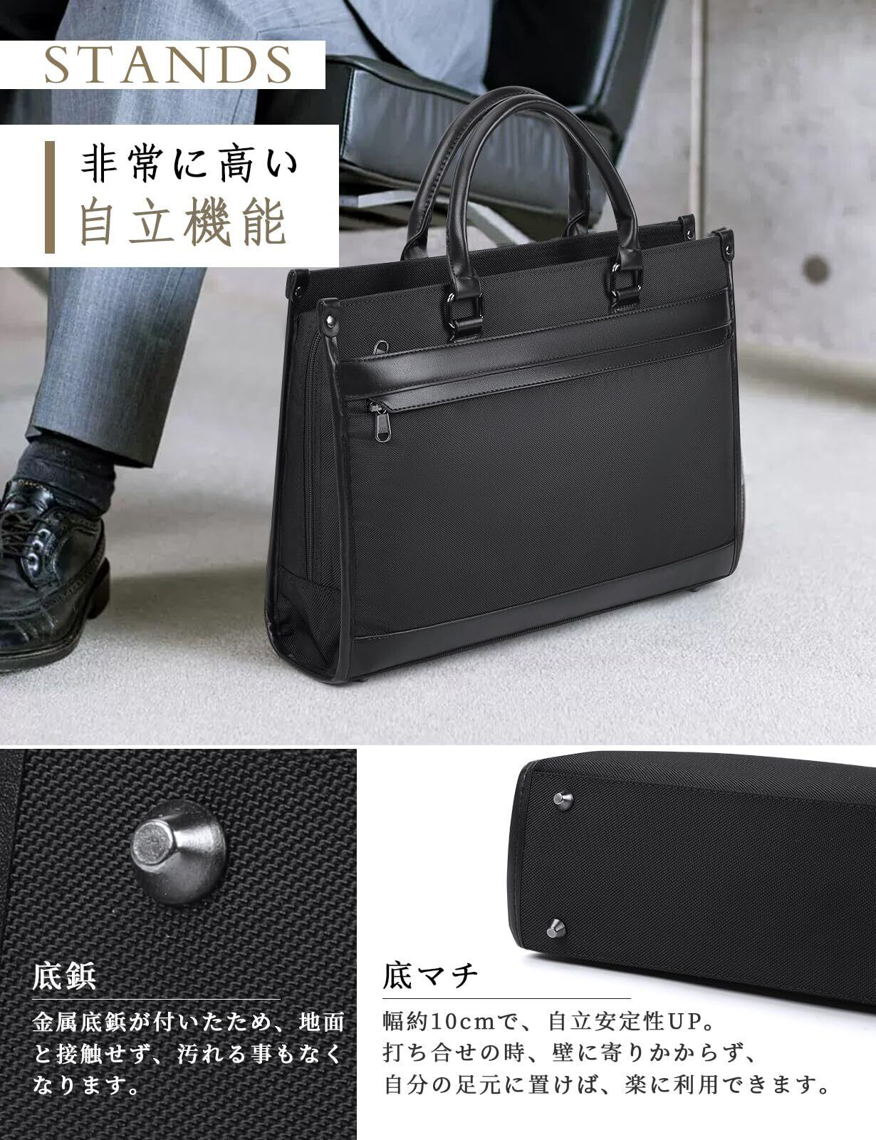 「自立機能、リクルートに最適」:金属底鋲が付いたため、地面と接触せず、汚れる事もなくなります。打ち合せの時、壁に寄りかからず、自分の足元に置けば、楽に利用できます。