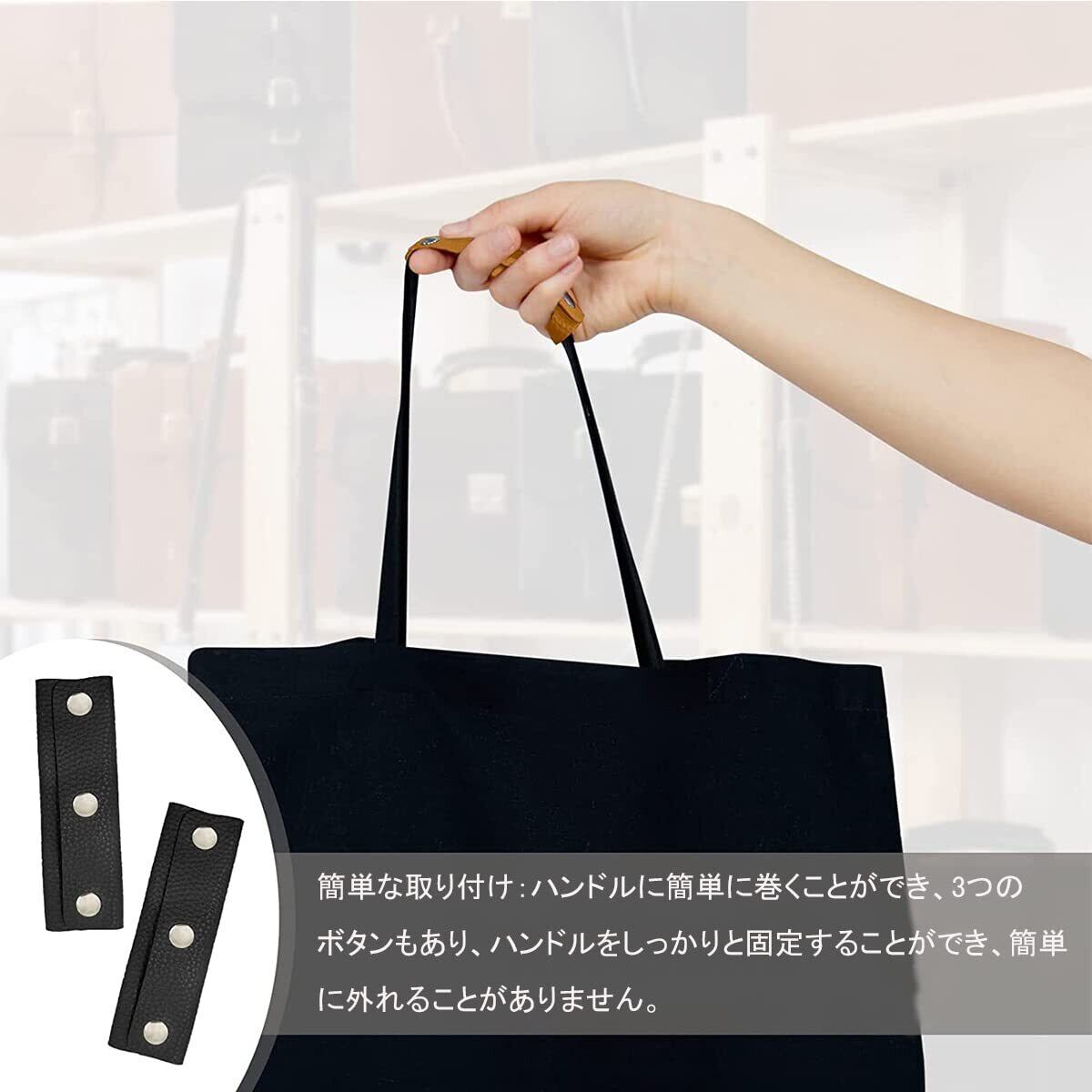 バッグ 持ち手 カバー 革 2枚組 取り外し可能 革 柔らかい グリップ トートバッグ ビジネスバッグ用 防勒 滑り止め 男女兼用 (ブラック)