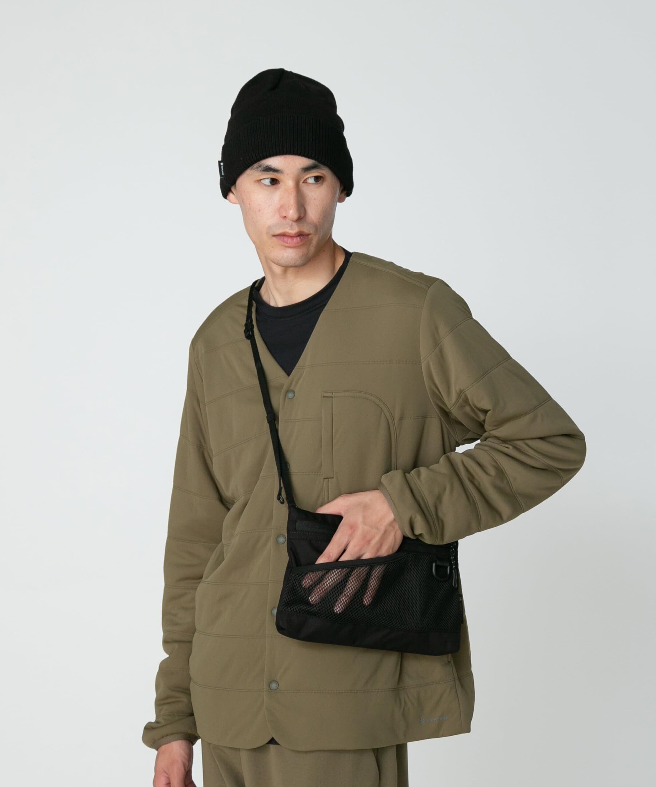 こちらは表地に合わせてファスナーもPFASフリーに変更したサコッシュ。最低限の機能を備えつつ、Snow Peakらしいギミックの効いた逸品です。手の入れやすいフロントメッシュポケットが、デザインアクセントの役割も担うディテールに。改良点としては、インナーポケットとDリングの仕様変更が挙げられ、加えてブランドピスネームのデザインも変更しています。 カラーは合わせやすい、ブラック、オリーブ、グレーの3色展開です。容量は約2リットルとなります。 ■内容量:2L