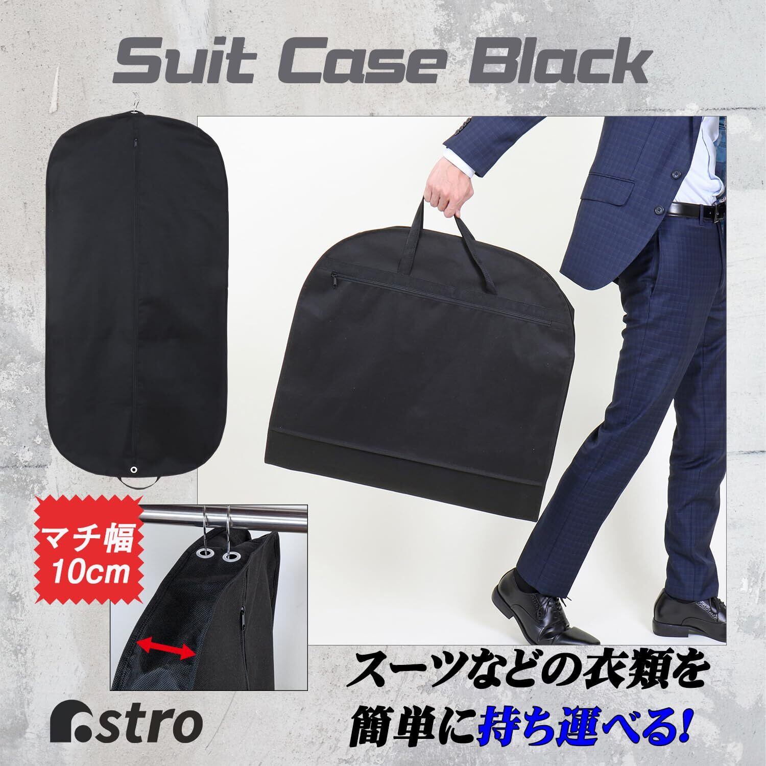 アストロ スーツカバー マチ付 黒 厚手不織布 ファスナー 小物ポケット付き 持ち手付き 605-30