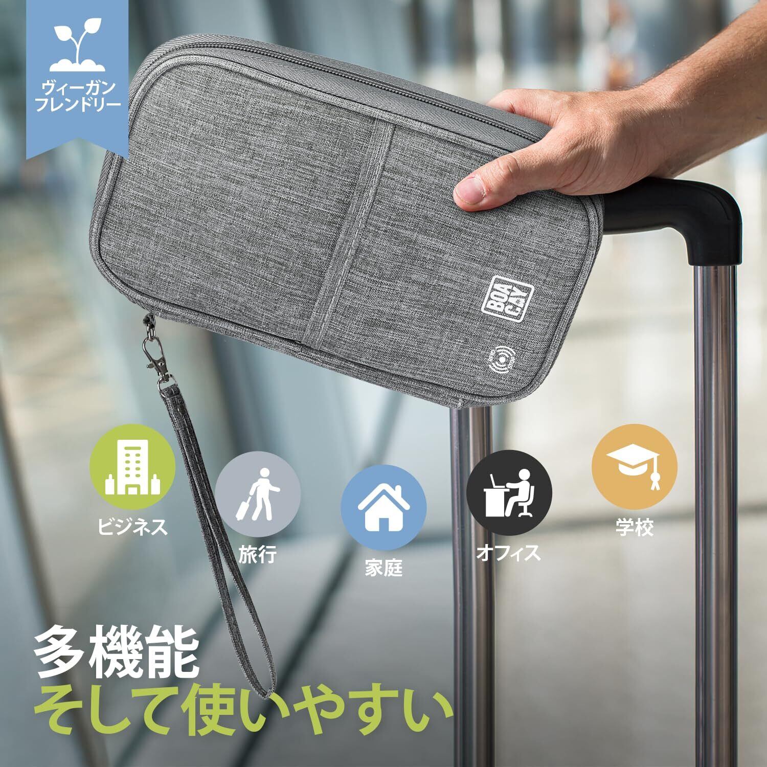 [BOACAY] トラベルドキュメントオーガナイザー、ファミリーパスポートケース、女性と男性用財布、カード・搭乗券・現金・チケット入れ、持ち運びが簡単で防水のケース