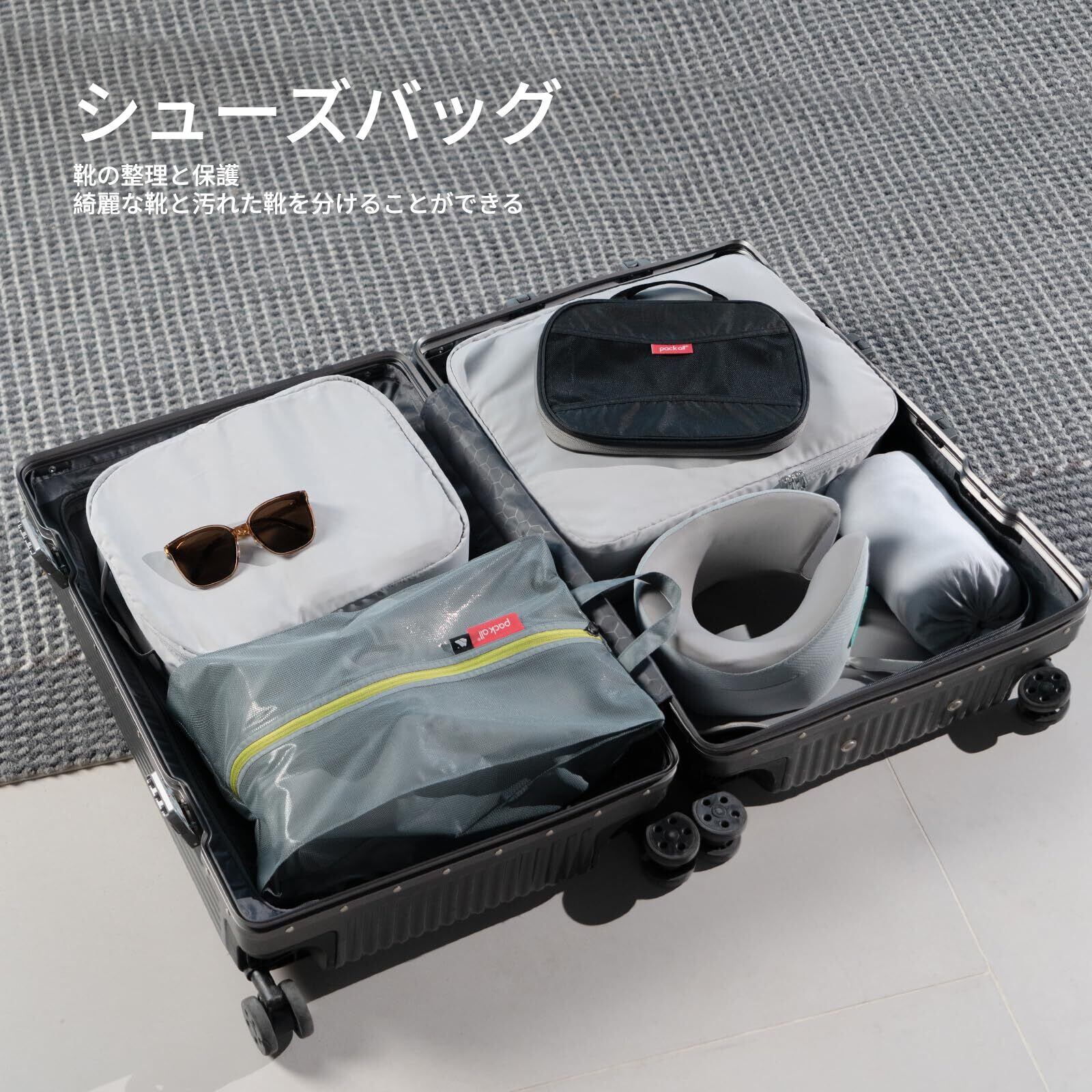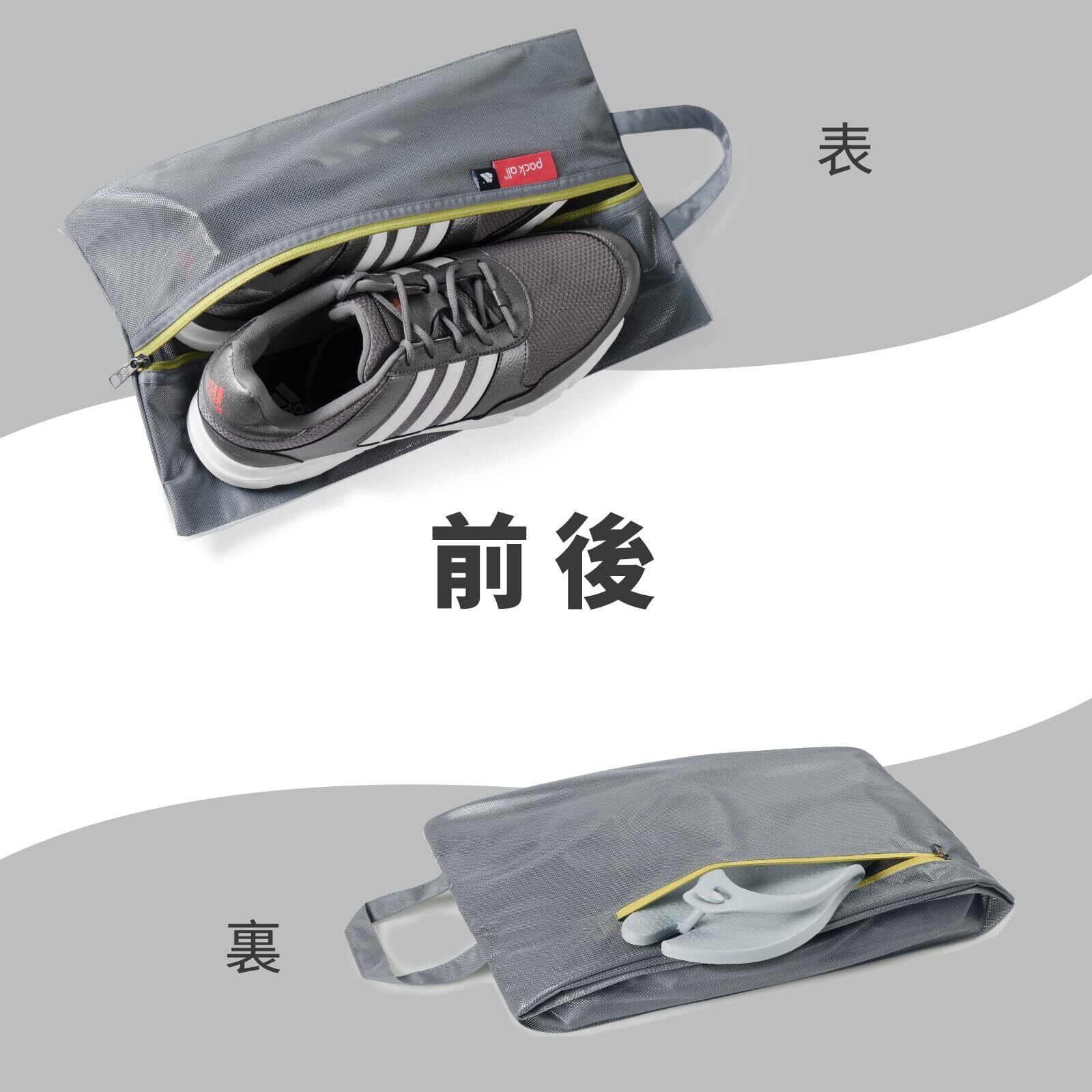 pack all シューズケース シューズバッグ 二重ポケット構造 超軽量 撥水加工 半透明 色とサイズ選び可能 シューズ袋 上履き入れ 靴入れ 衣類入れ 収納バッグ 旅行 出張 スポーツ アウトドア 学校 家庭用 拡大版 グレー
