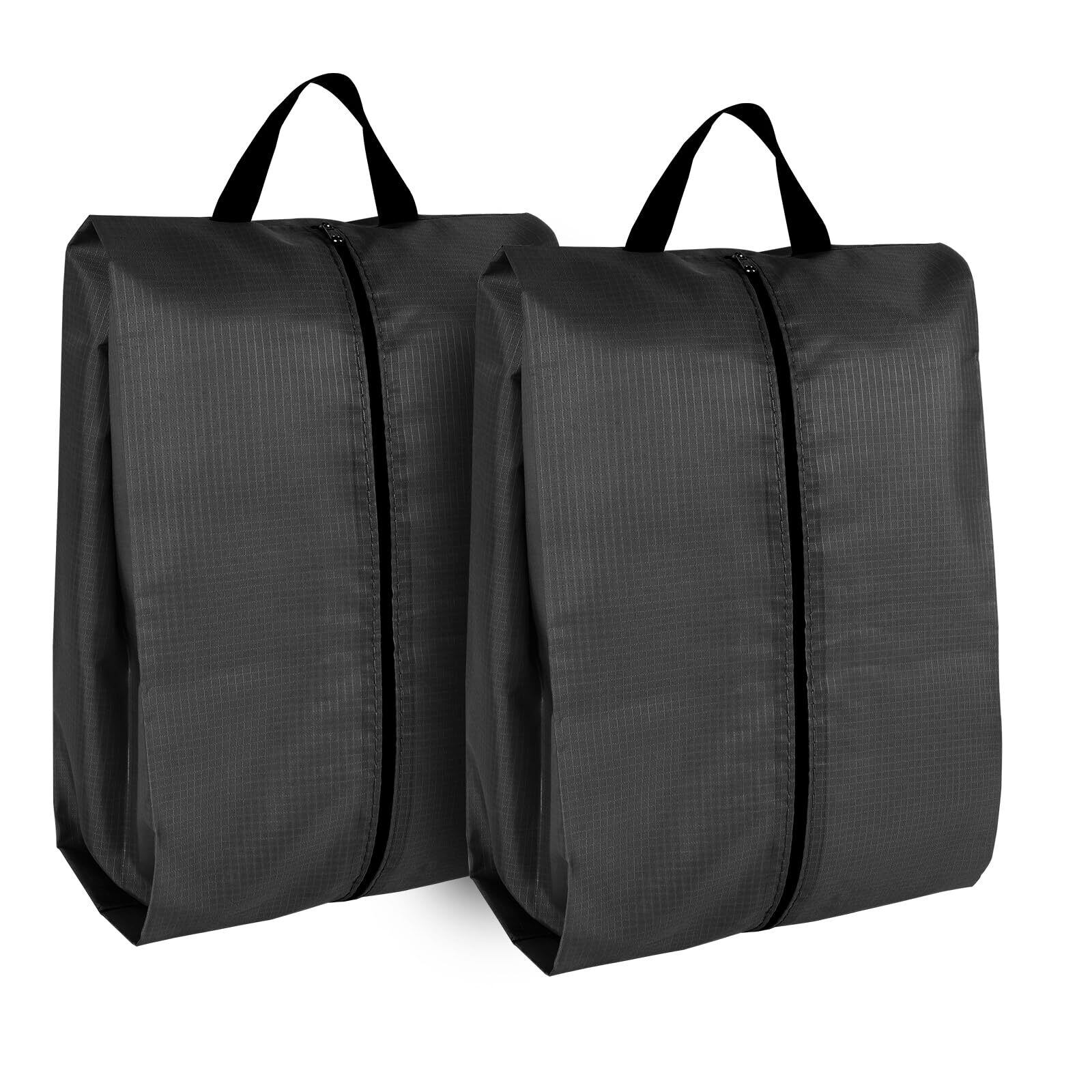 旅行用シューズバッグ - 2個パック シューズトラベルバッグ パッキング用 特大 防水 ポータブル トラベルシューズバッグ ジッパー付き 旅行の必需品 女性と男性用 (ブラック)