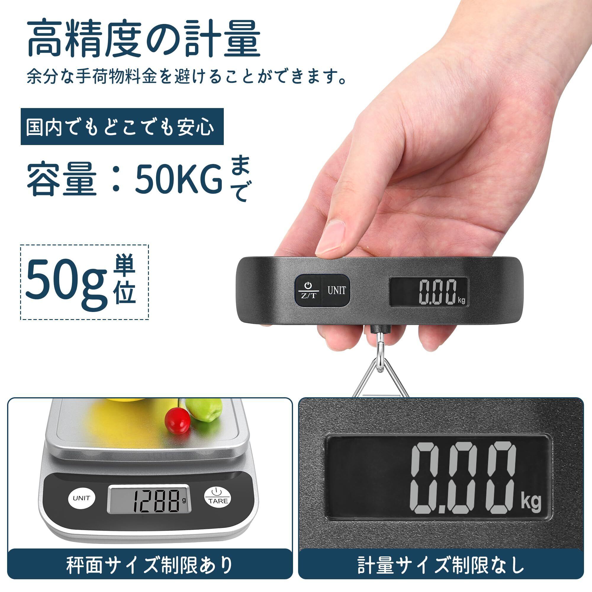 「最大50kgまで️️」最大50KGまで測れる、重いスーツケースでも快適に使えます: この荷物はかりは、50gの刻みで正確な計量が可能。100gの軽量ボディは、持ち運びに便利で、カバンの中でも場所を取りません。旅行や買い物️、家庭用としても大活躍します。