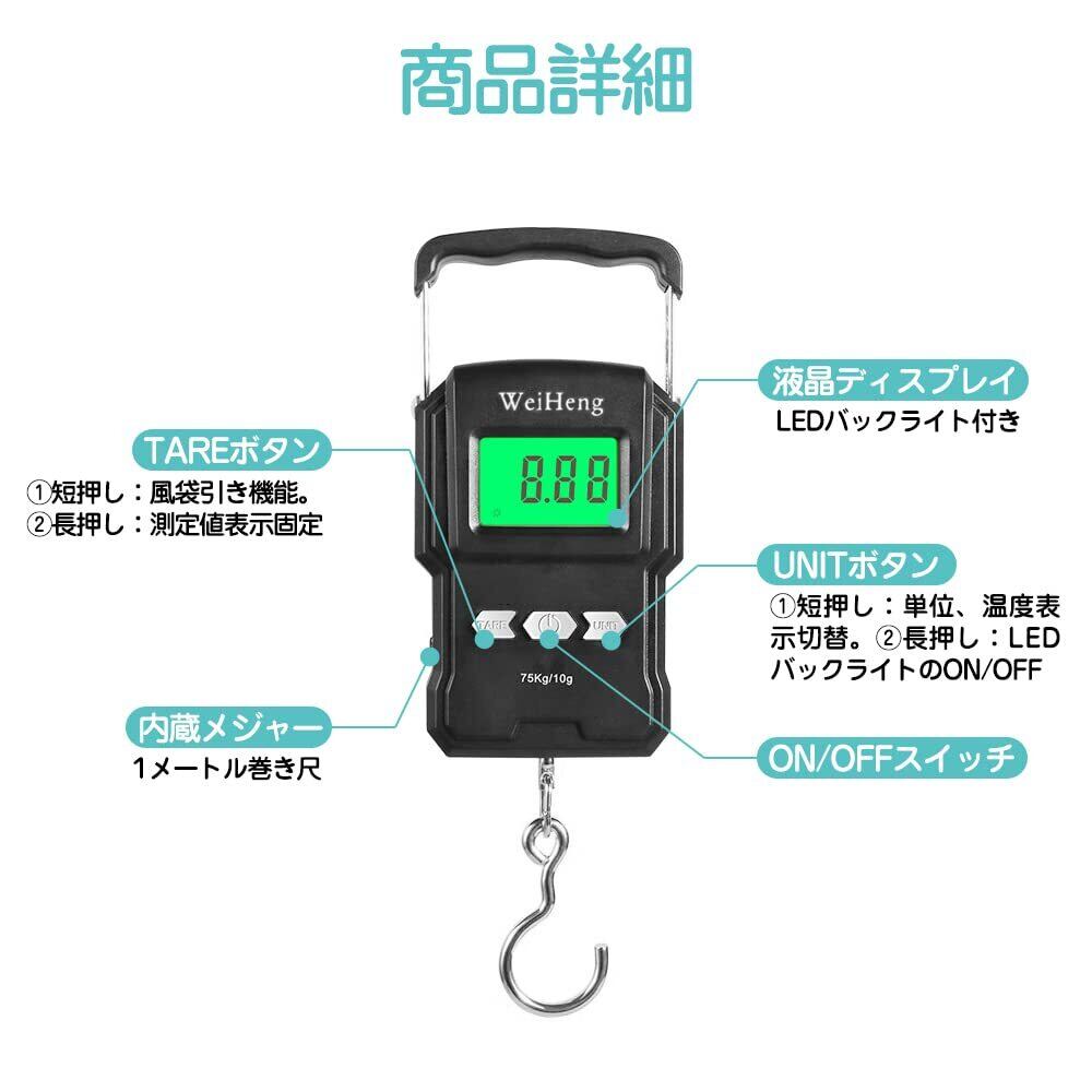 YFFSFDC フィッシング用 吊りはかり 75KG デジタルスケール 吊り下げ秤 電子はかり 1Mメジャー付き デジタル フィッシング スケール はかり 秤 携帯便利