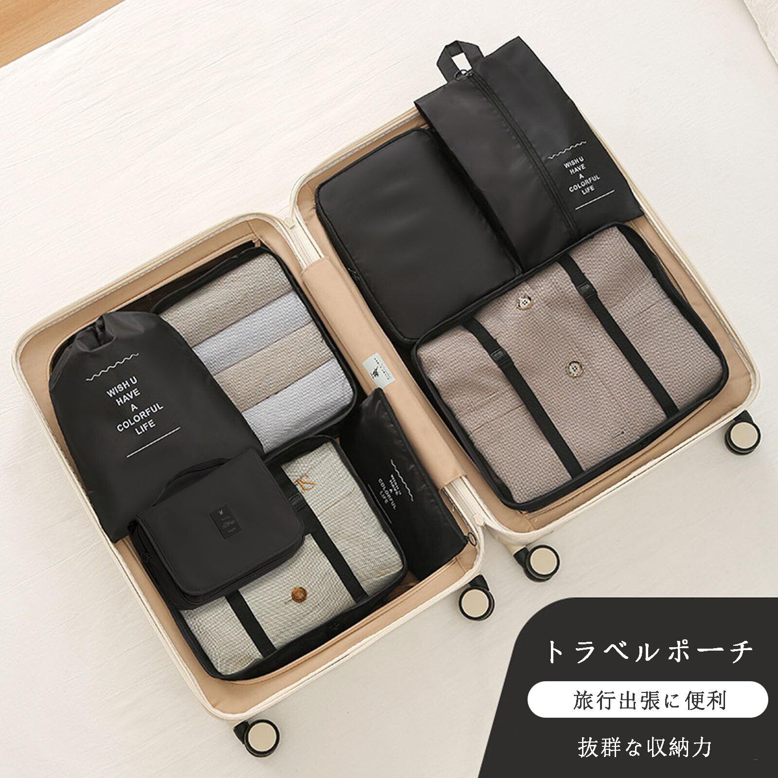 トラベルポーチ 15点セット アレンジケース 旅行用 収納 トラベルポーチ セット 可愛い パッキング パッキング ポーチ 出張 整理 便利グッズ 衣類 靴用 下着収納 下着/洗面用具/シューズ/小物入れ 旅行用便利グッズ 旅行用ポーチ トラベルポーチ(ブラック)