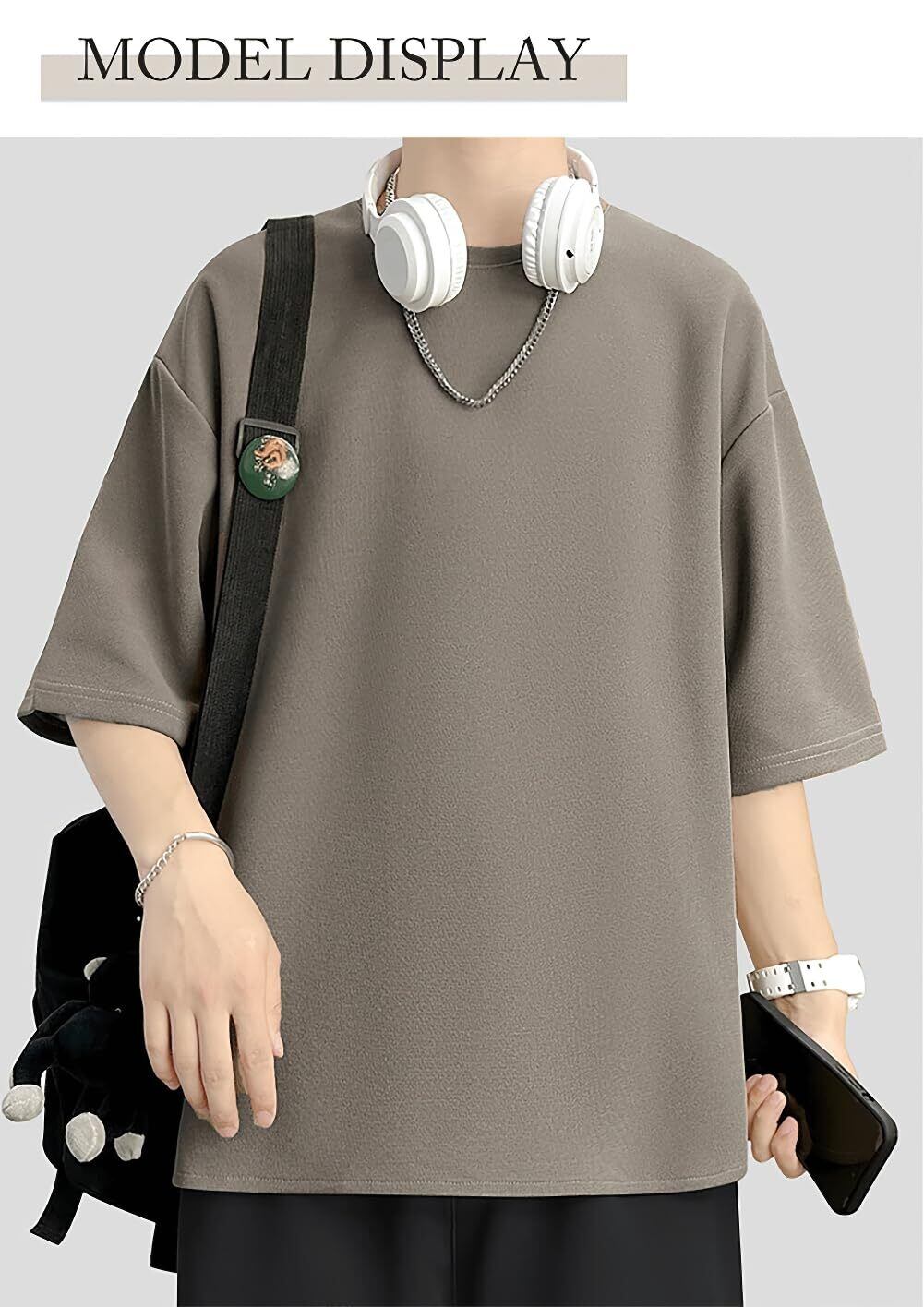 [Yezai] tシャツ メンズ 半袖 夏服 接触冷感 オーバーサイズ 通気性 吸汗 速乾 7分袖 ゆったり 大きいサイズ 無地 トップス ティーシャツ