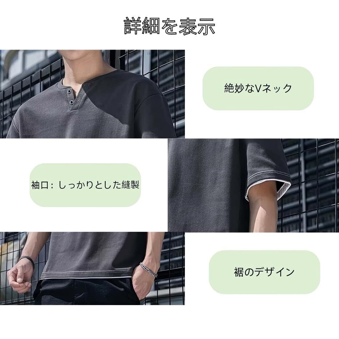 [Yezai] tシャツ メンズ 半袖 重ね着風 夏服 五分袖 通気性 速乾 Vネック カジュアル ゆったり 無地 オシャレ かっこいい 夏 ティーシャツ 大きいサイズ
