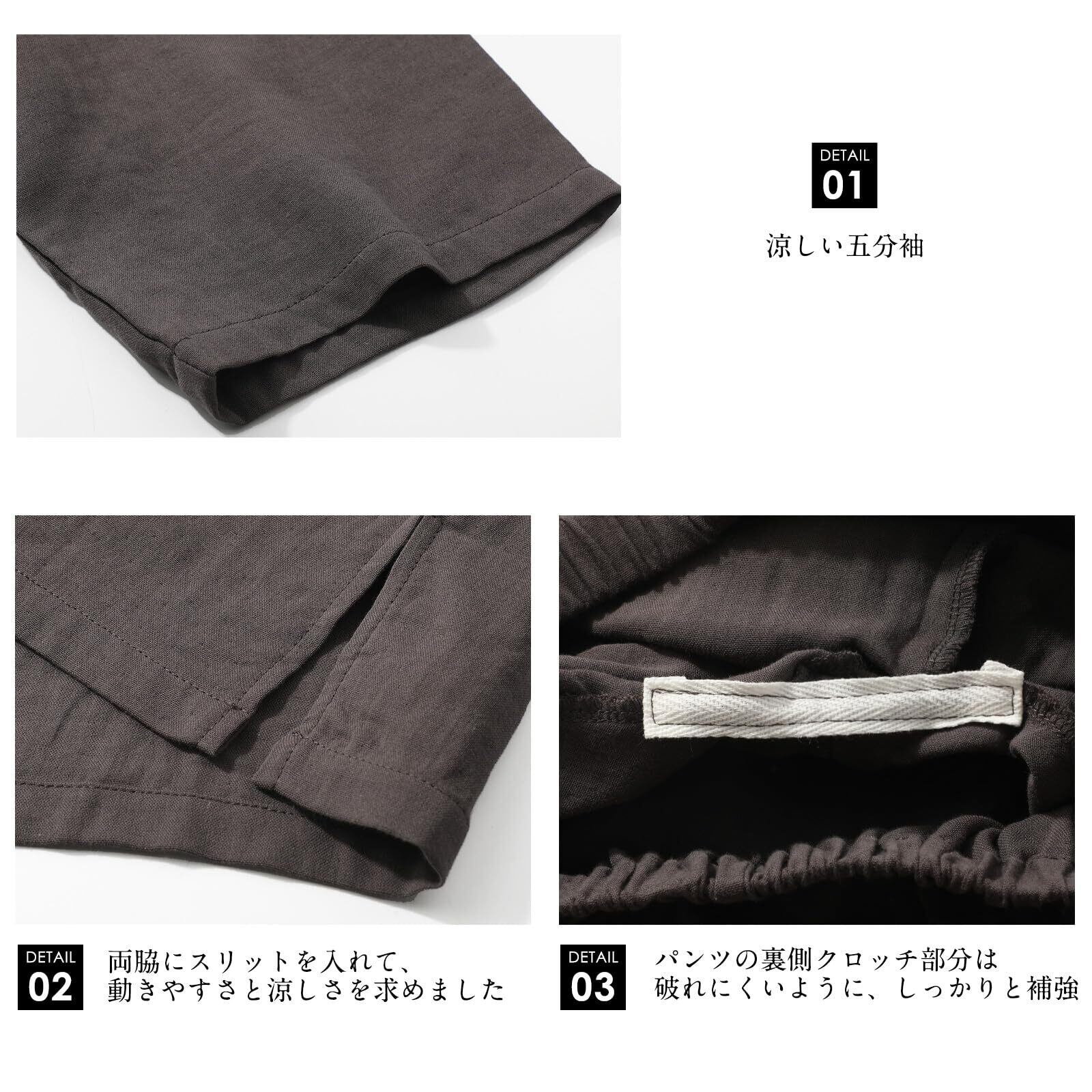 【大きいサイズ】風を通すように身幅も、袖も、パンツもゆったり目に作っています。締め付け感の少ないゆったりデザインで長時間着ていても楽ちんです!吸湿性により汗をすばやく吸収し、発散してくれます。汗ばむ季節はサラサラとした着心地です。涼しげなカラーと無地生地も、清涼感のあるリラックスタイムをアシストします。