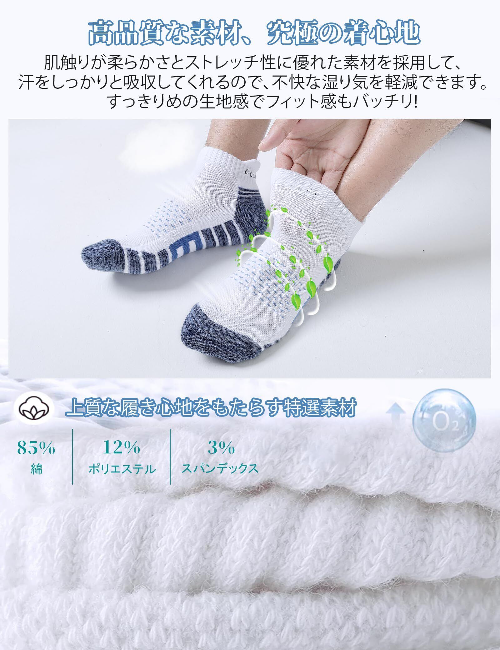 [CLOSEMATE] ソックス メンズ 靴下 スポーツソックス 蒸れない 防臭吸汗 スニーカーソックス 通気耐久 アウトドア 四季用 運動 吸湿消臭 6足組