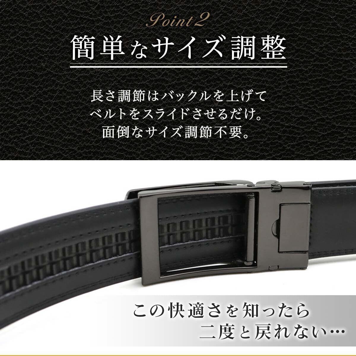 [MISSOKIE] 本革 ベルト メンズ オートロック バックル 無段階 穴なし スーツ ビジネス カジュアル コンフォート クリック ロング 120cm