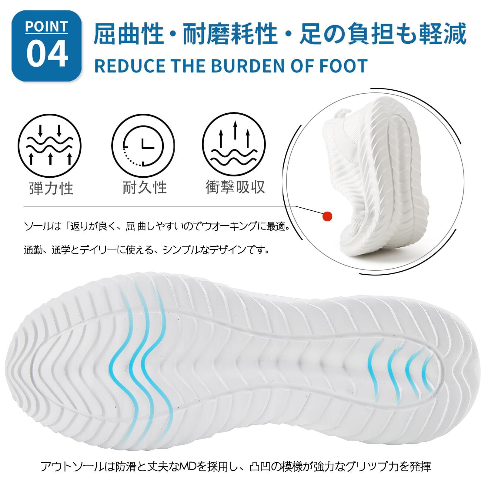 【卓越的なクッション性と雲のような快適さ】ミッドソールには厚手のEVAフォームを採用し、5層構造の衝撃吸収インソールと約3cmの高めアウトソールを組み合わせることで、より強力な衝撃緩和効果を実現。卓越的なクッション性と弾力性を提供します。シューズ本体は柔らかく柔軟で、足のカーブに完璧にフィット。一歩一歩が軽やかで楽な履き心地を実現します。ランニング、トレーニング、日常のウォーキングなど、あらゆるシーンで足への衝撃を効果的に吸収。外反母趾や幅広・甲高の方におすすめです!長時間の運動や立ち仕事(レジ係、医師、看護師、レジスタッフ、事務員、介護士、高齢者、通勤歩行者、レジャースポーツ者、营业员、看護師、教師など)にも最適で、一日中快適なサポートを提供します。スポーツシューズとしても、通勤シューズとしても、理想的な選択肢です。