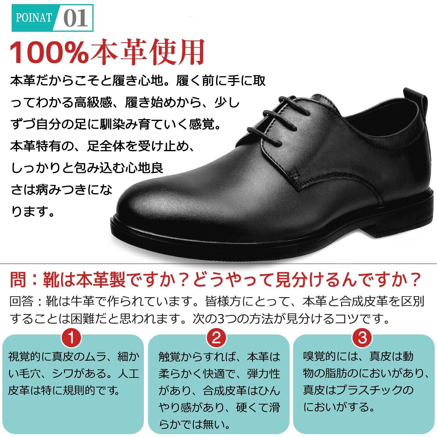 [SOARHOPE] 走れる ビジネスシューズ 革靴 メンズ 本革 軽量 ビジネス スニーカー 走れる 革靴 歩きやすい革靴 黑 3E