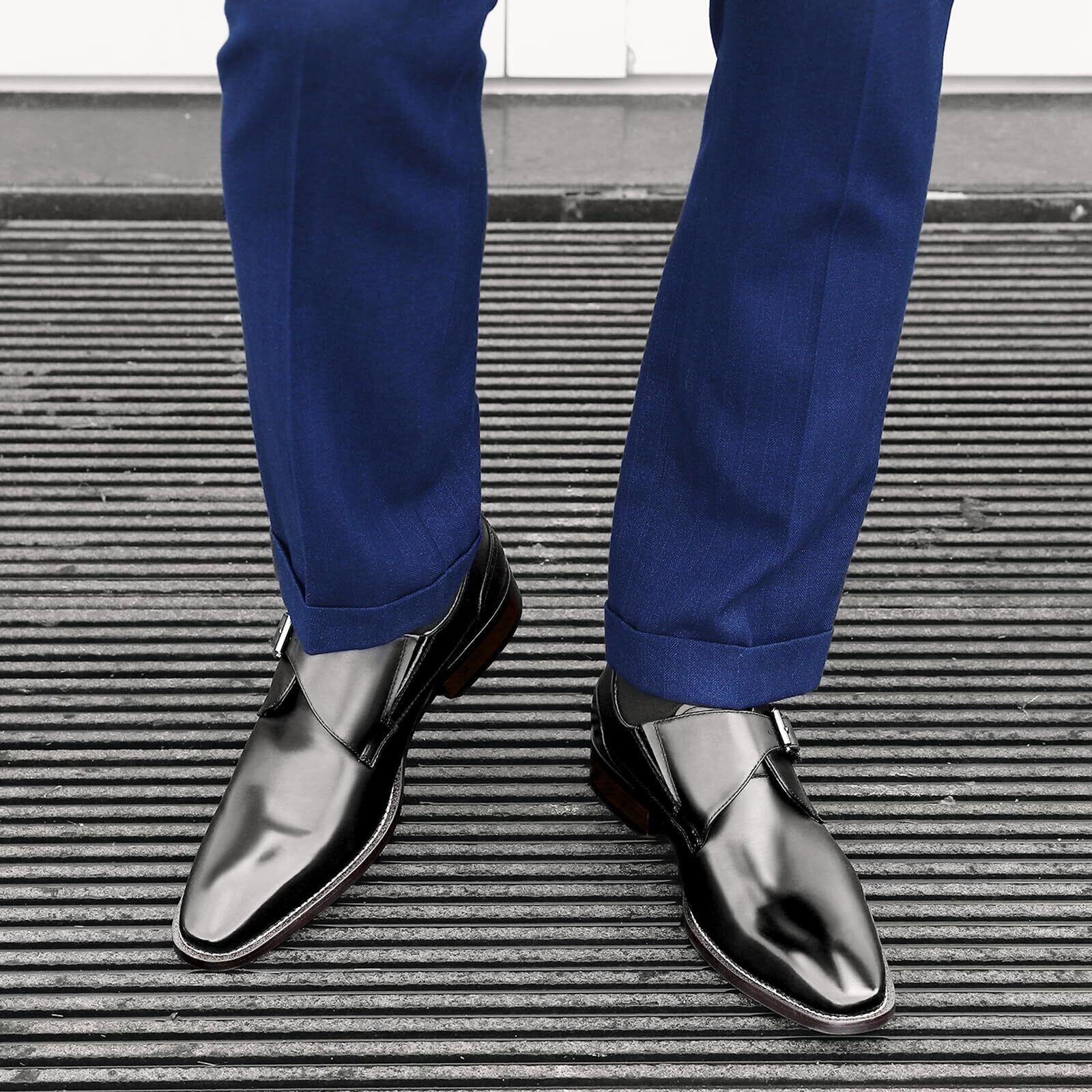 [フォクスセンス] ビジネスシューズ 革靴 メンズ 本革 ドレスシューズ プレーントゥ 紳士靴 モンクストラップ