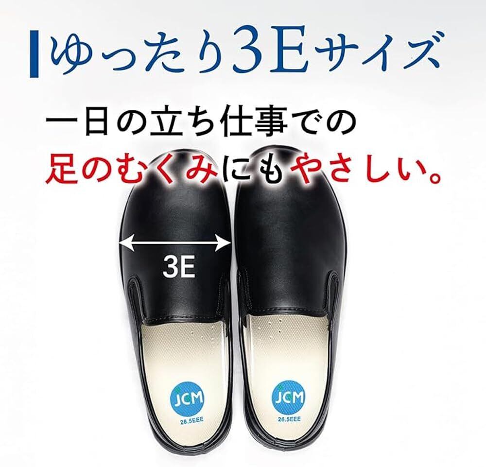[ジェーシーエム] コックシューズ 厨房シューズ 厨房靴 耐滑 撥水 耐油 軽量 耐摩耗 クッション 性 幅広 3E 調理場 疲れにくい 幅広3E スリッポン 飲食店 キッチン ホール