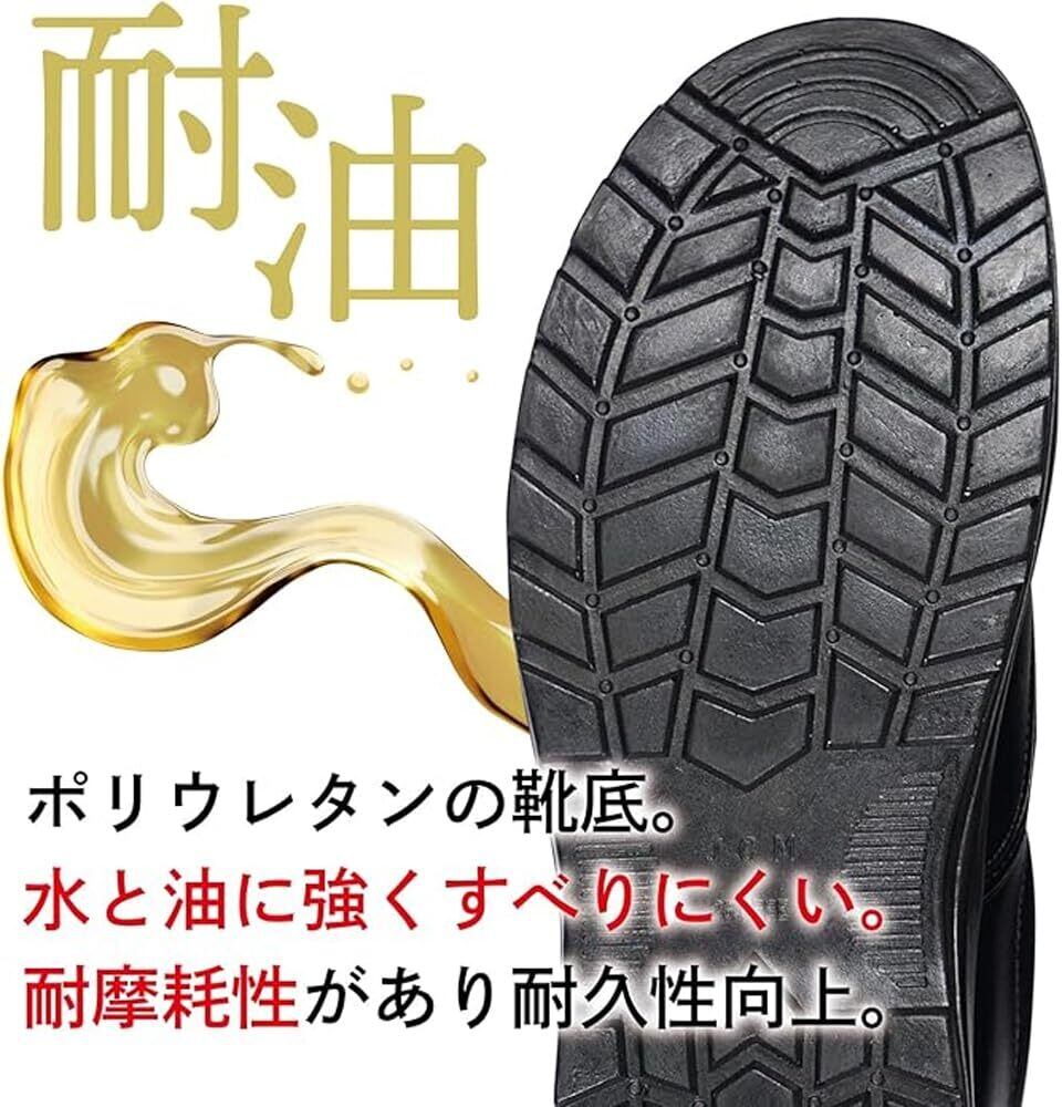 靴底素材にはポリウレタンを使用し、ポリウレタンは水と油に強く、滑りにくいのに屈曲性もあるので、非常に動きやすい仕様となっています。