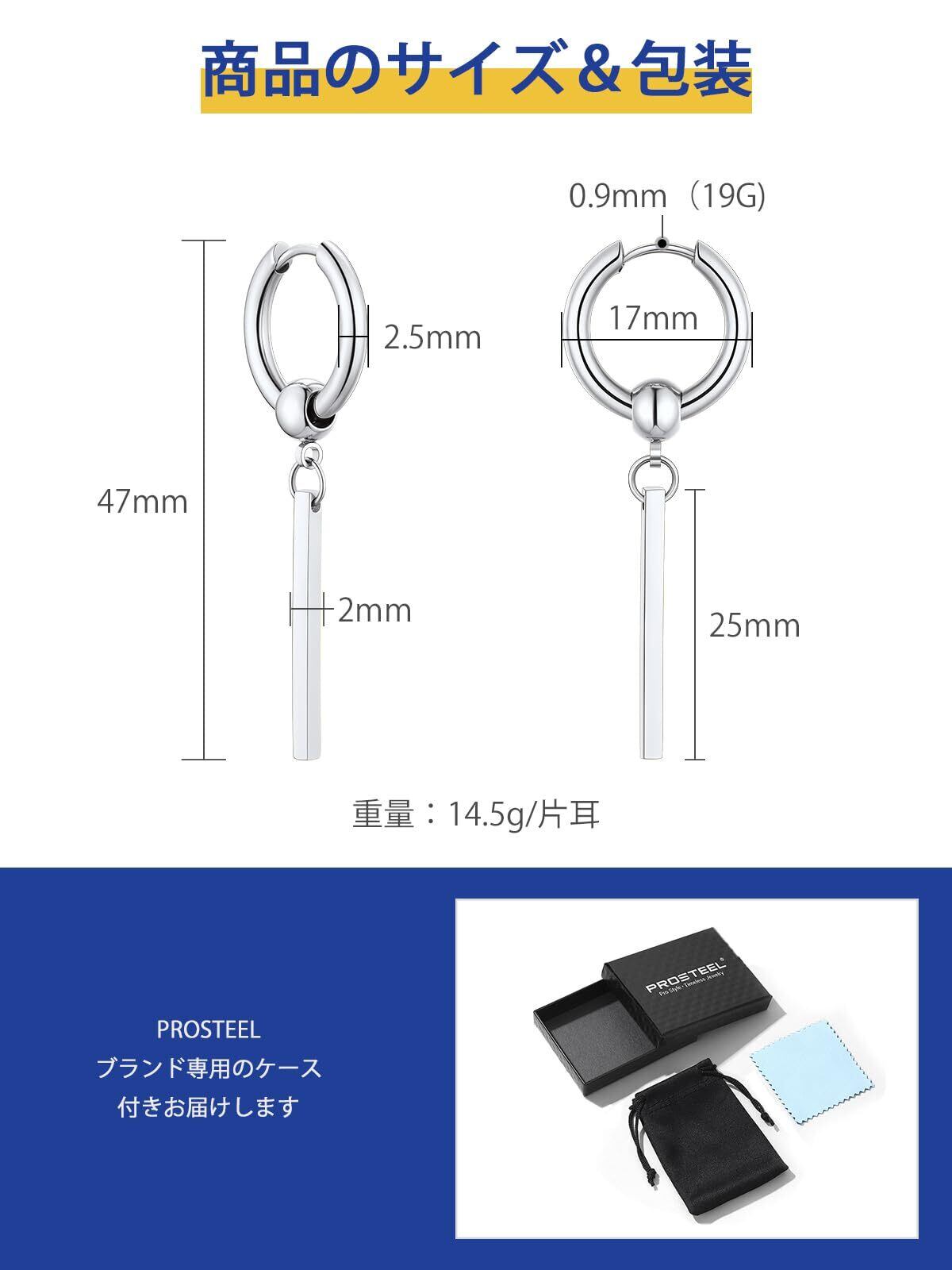 【サイズ】リングの直径約12mm、ピアス全体の長さは約47mm、プレートの幅は約2mm、長さ約25mm