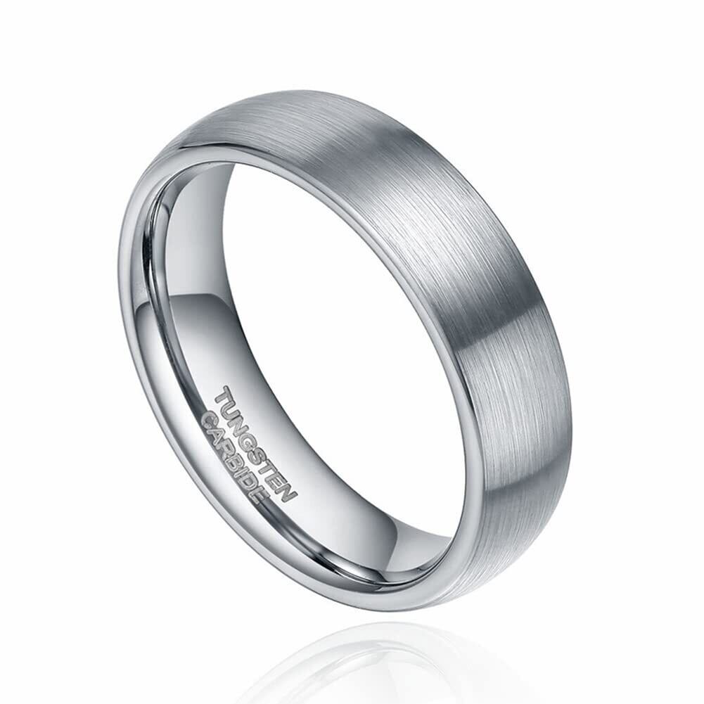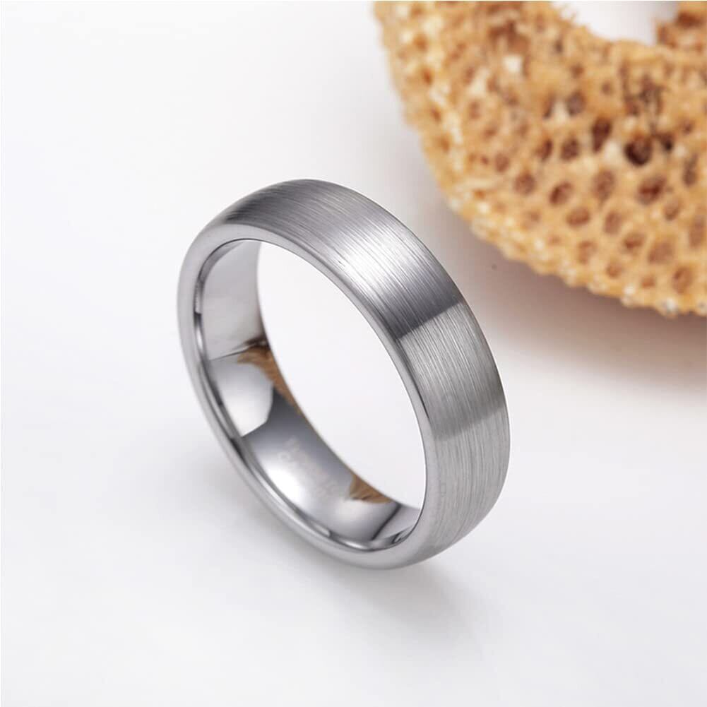 【Rockyu 指輪】タングステン リング メンズ シルバー 金属アレルギー対応アクセサリー。横幅6mmのシンプルデザインで、日常使いから結婚指輪やペアリングにもおすすめです。