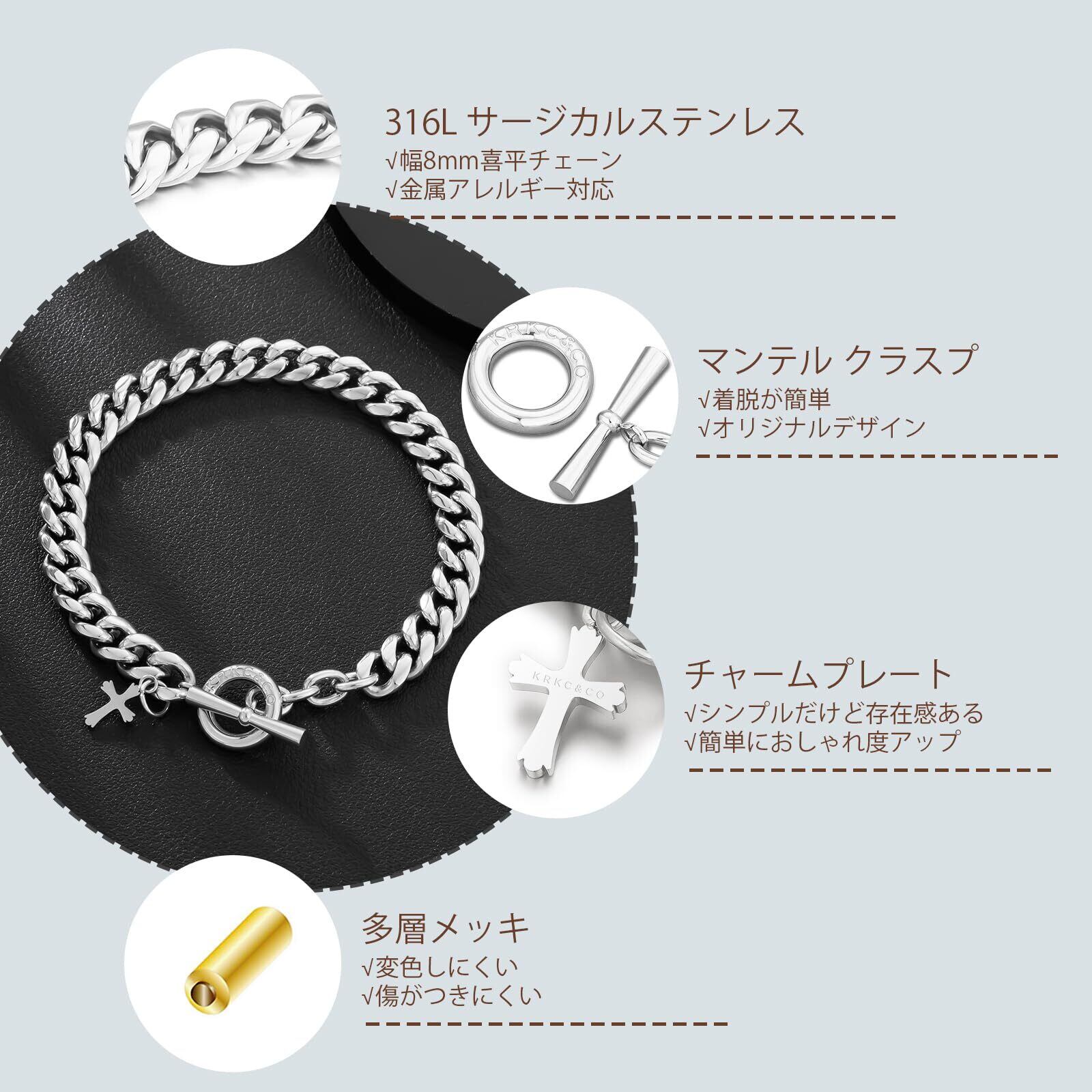 KRKC&CO ブレスレット メンズ 喜平チェーン マンテルブレスレット 幅8mm サージカルステンレス K14金メッキ バングル 金属アレルギー対応 ストリート カジュアル アクセサリー ギフト