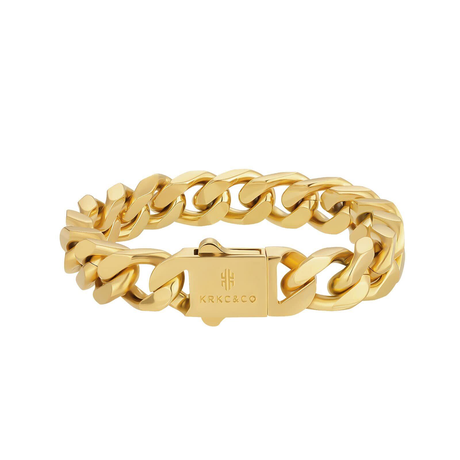 KRKC&CO 喜平ブレスレット メンズブレス 12/14mm サージカルステンレス 6面/4面カット キューバンチェーン k18金メッキ キヘイ 腕輪 ダンサー B系 ストリート ヒップホップ ラッパー ギフト