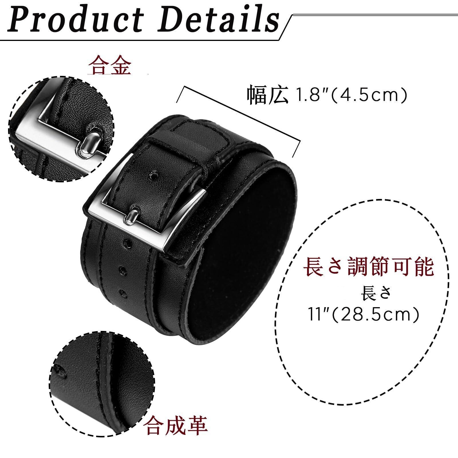 材質:合金+レザー、カラー:ブラック 長さ: 11"(28.5cm) 幅: 1.8"(4.5cm) 重量: 40g