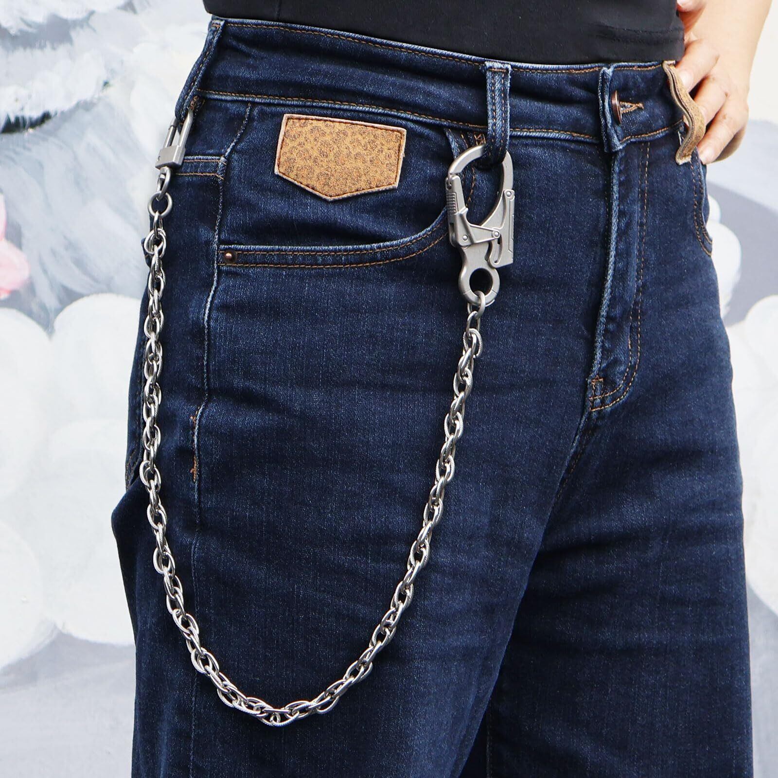[Ahiller] 61cm パンツ用ウォレットチェーン&キーチェーン(合金製ダブルロックカラビナクリップ付き)、パンクスタイルの金属デザイン。バイカーギアとウォレットアクセサリー用