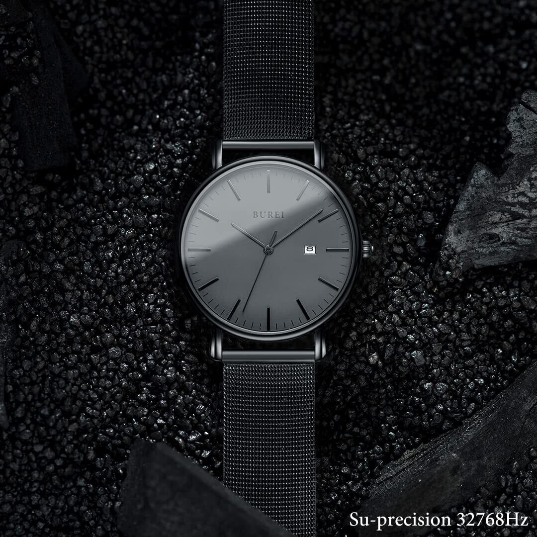 BUREI腕時計シンプルでスタイリッシュな外観を与えたり、溢れる高級感ありのブラックプルーのダイヤルと日付きのユニセックスファッション時計です。男性のステータスを表すメンズブランド腕時計なので、幅広い年齢層の男性におすすめです。ファッションにこだわりのある旦那さん、年配の父へ贈るのプレゼントとしても適合しています。