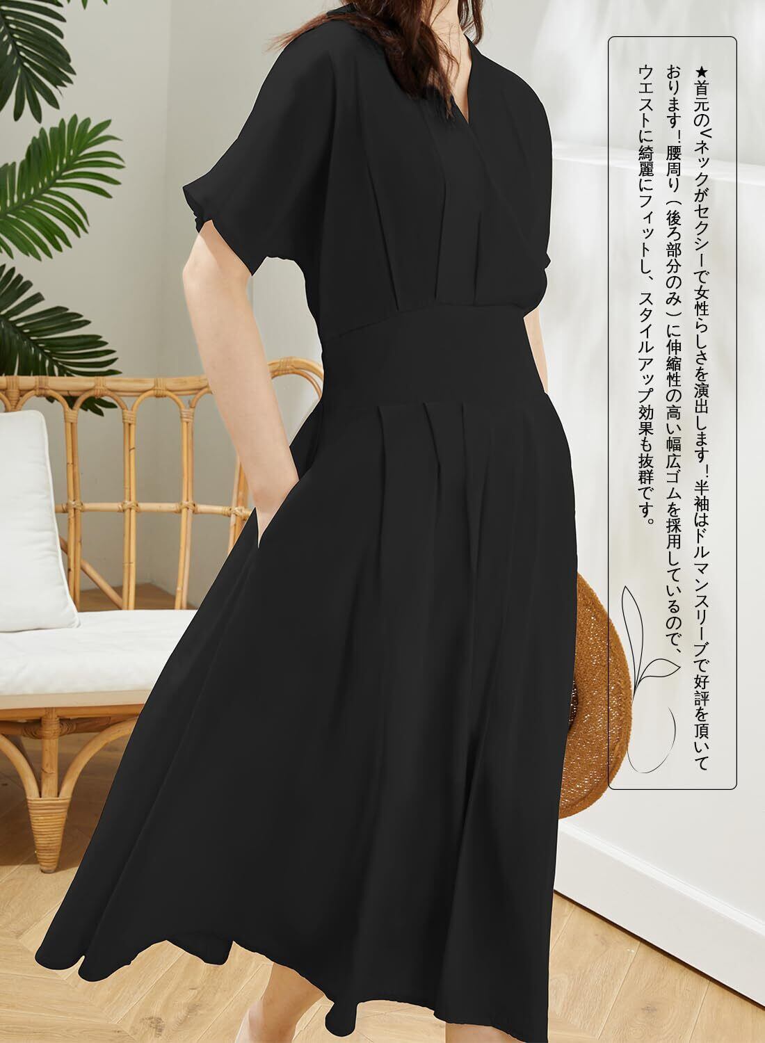 [Yino] ワンピース レディース マキシワンピース Vネック とろみ シフォン ウエストゴム シフォン ロングワンピース 大きいサイズ 半袖 裏地付き ゆったり 着痩せ お洒落 魅力 上品 夏 ワンピ
