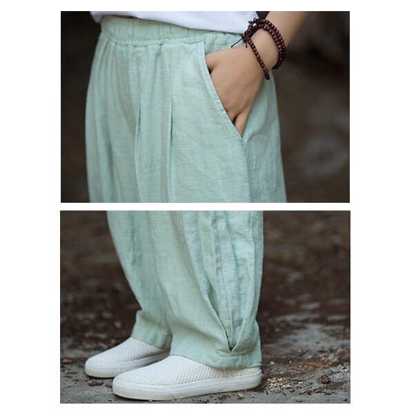 【快適な着心地】通気性に優れた薄手生地で夏でもリラックスな着心地。涼しくて快適、汗ばむ夏にも最適な綿麻パンツ