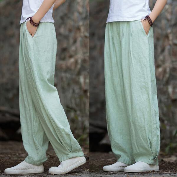 [Ailiyumo] ワイドパンツ レディース 綿麻 サルエルパンツ 夏 薄手 ガウチョパンツ 大きいサイズ 9分丈 無地 通気 ゆったり