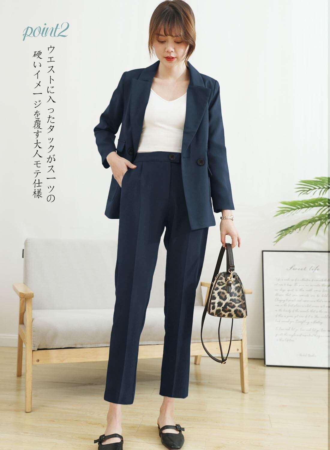 ✨洗練された質感が清潔感のイメージを演出くれます。一旦着ると、超着痩せ!超格好良い!超オーラがさす!ジャケットはすっきりした印象の1つボタンのベーシックなテーラードジャケット。脚をキレイに魅せるテーパードアンクルパンツは後にゴムが入っていて着脱が楽です。ポケットが二つあって、小さいものを入れることができます。細すぎず太過ぎないシルエットは流行に左右されませんの九分丈のパンツです。