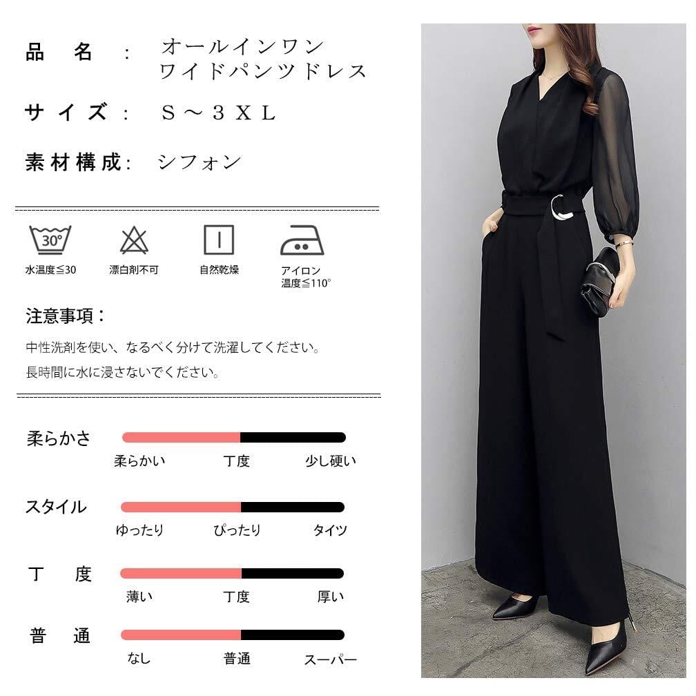 脚を優雅に見せてくれる、締め付け感も無く着心地が良いなワイドパンツドレス。丈が長すぎる場合はアイロンテープなどで裾上げ可能です。