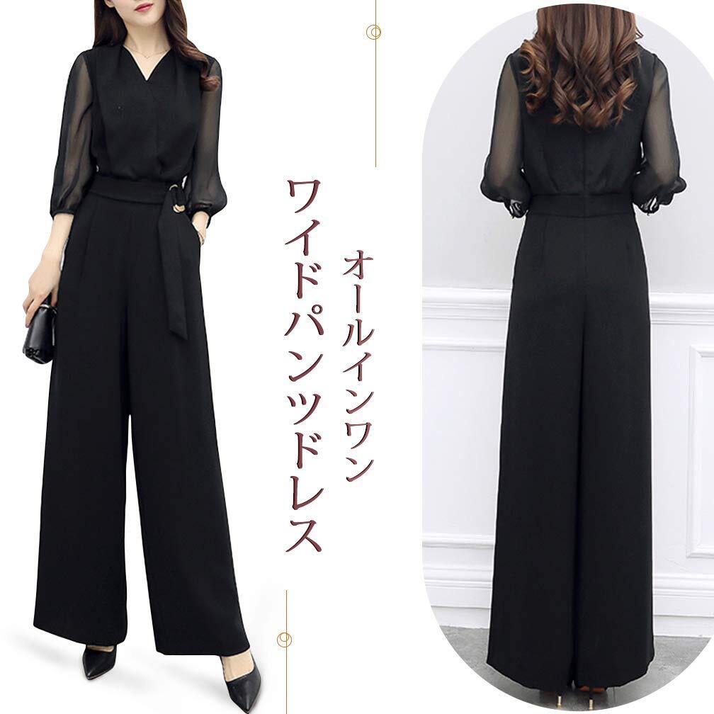 [Muxuryee] パンツ ドレスレディース オールインワン シースルー レース セットアップ パーティー 結婚式 8分袖 夏服