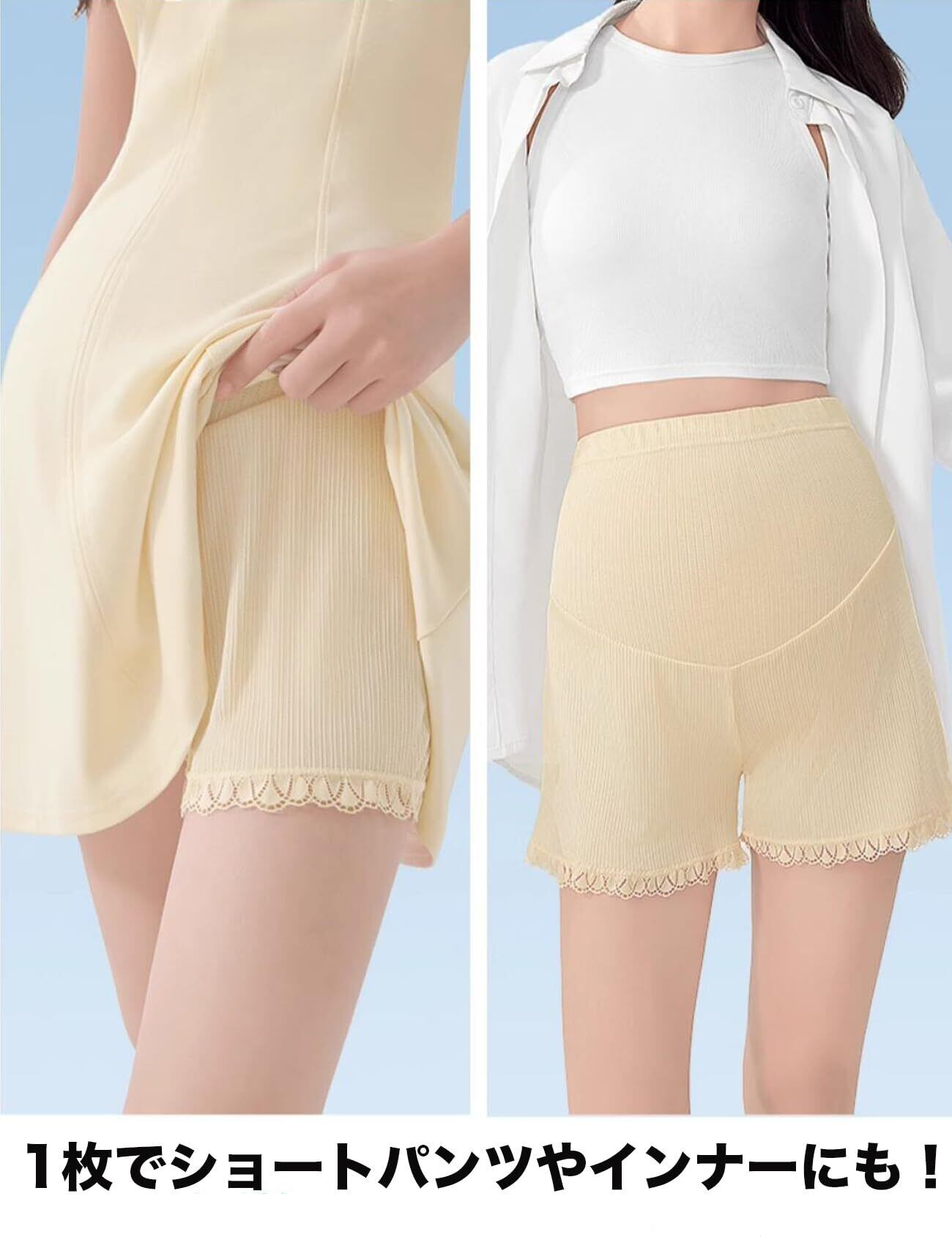 [MIIFIT] マタニティ ペチパンツ ペチコート ショートパンツ アンダーショーツ インナー オーバー パンツ マタニティショーツ ハイウエスト ルームウェア 薄い 蒸れない 高通気性伸縮性 柔らかい 裾レース おしゃれ