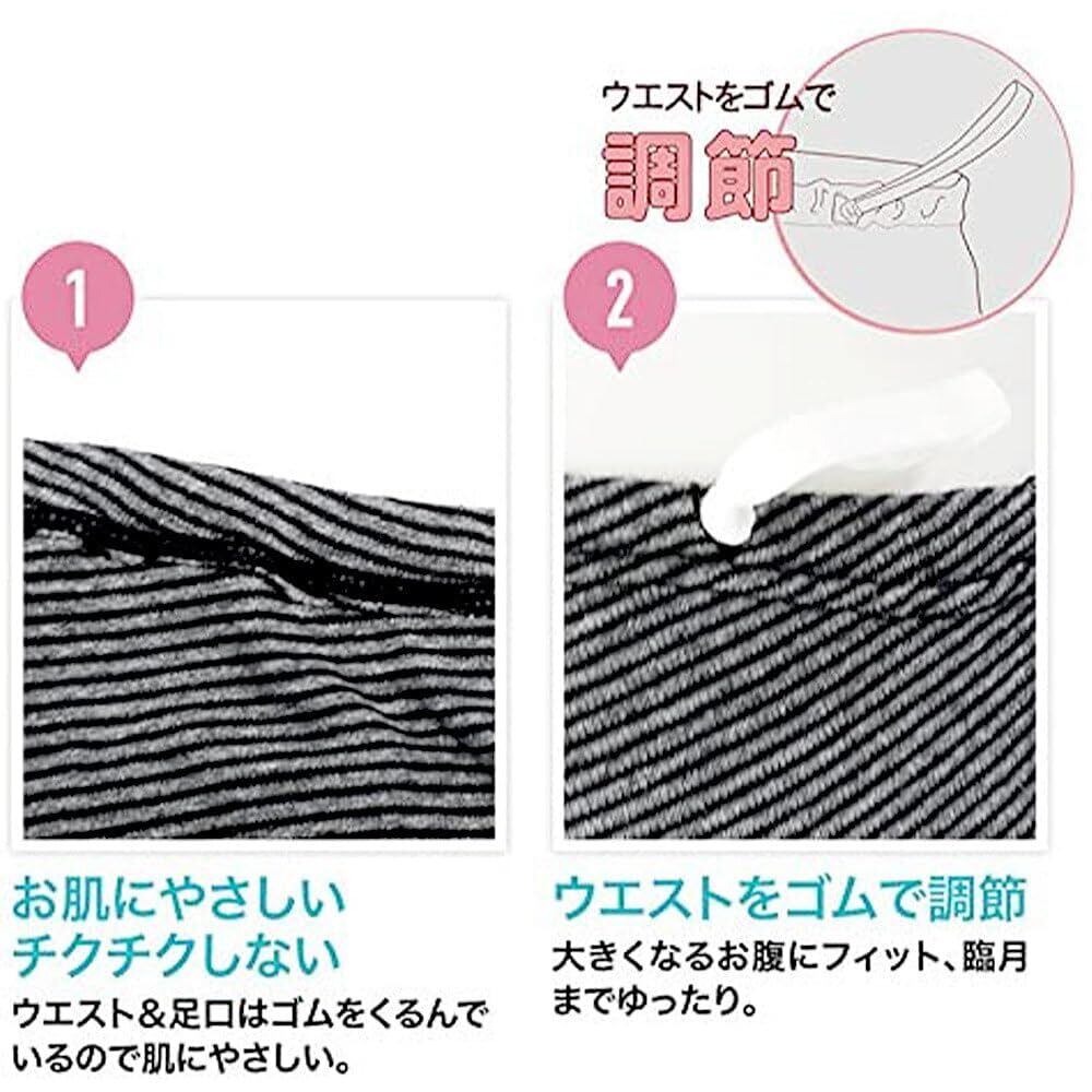 1.ウエスト&足口はゴムをくるんで、肌にあたらない。