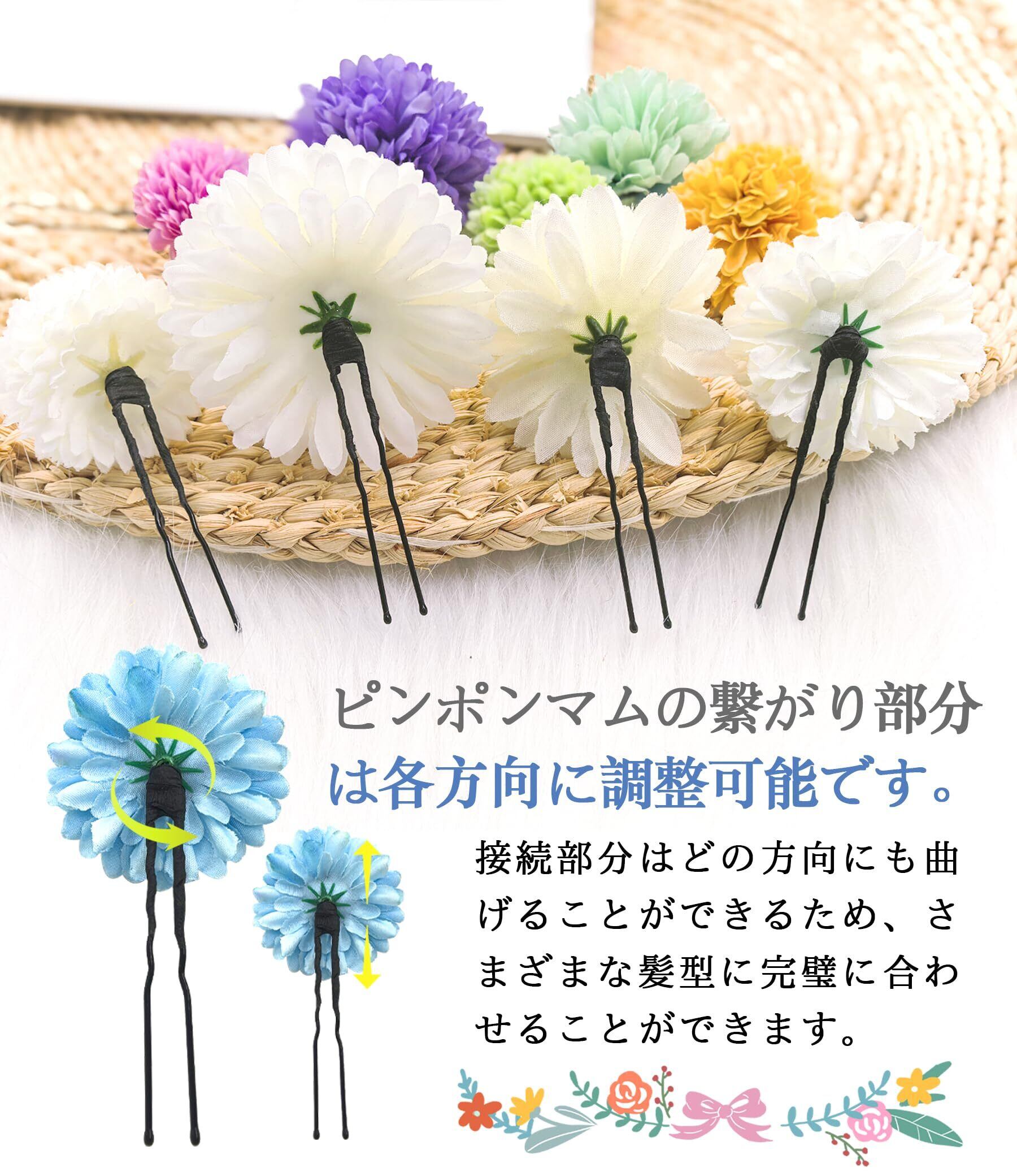 [JZOON] 成人式 髪飾り【12色展開】 ピンポンマム 紐 ドライフラワー 七五三 浴衣 袴 着物 飾り 振袖 和装 卒業式 結婚式 水引 かすみ草 造花 手作りかわいい 白 F3710