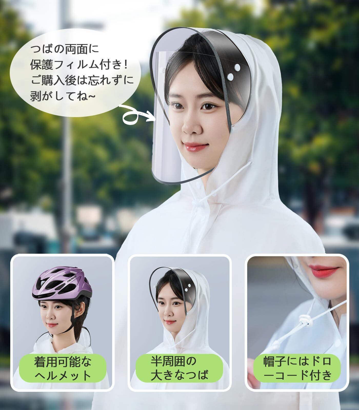 【クリアな視界、快適な防護】アップグレードされた高透明度のダブルバイザーは、雨風をしっかり防ぎながら、視界を妨げません。半円形の大型バイザーが包み込むような着用感を提供し、快適性を向上させます。フェイスマスクは取り外し可能で、天候に応じて柔軟に対応。ヘルメット着用時にも簡単に取り外せるため、安心して自転車に乗れます。レディースからメンズまで幅広く対応し、軽量で着心地抜群のポンチョタイプのカッパです。