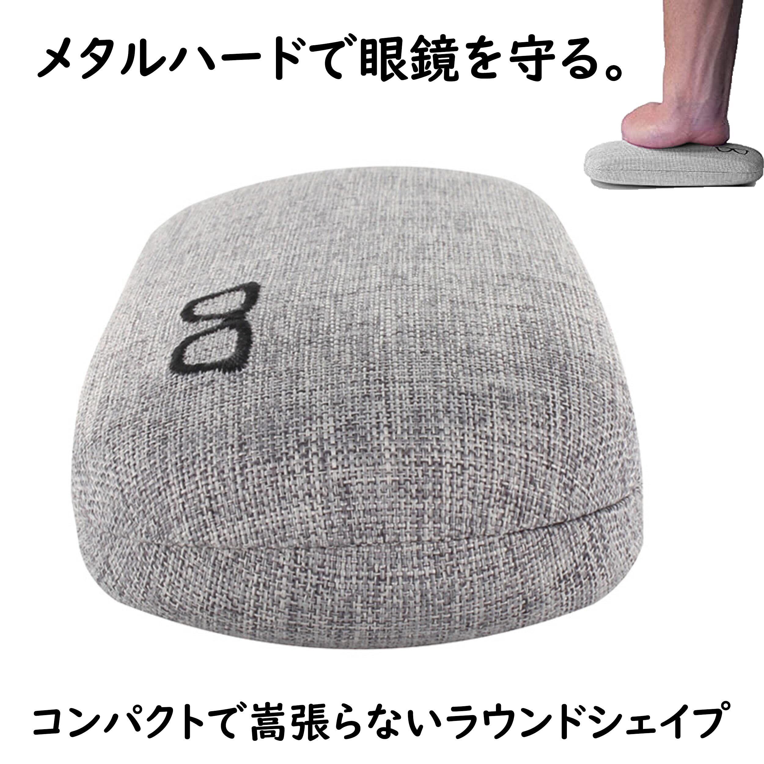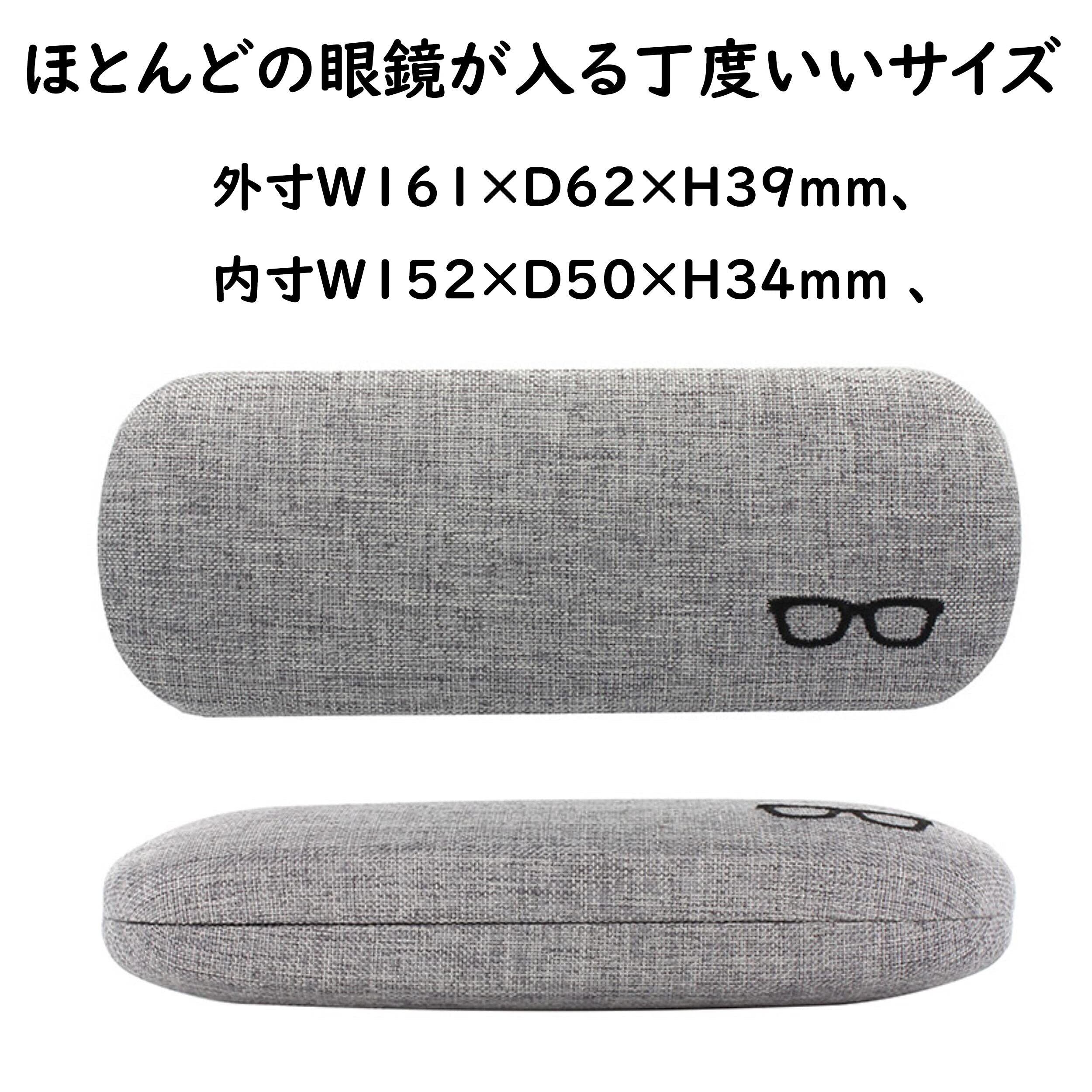 メガネケース メタル ハード ラウンド コンパクト おしゃれ ファブリック 生地 かわいい ワンポイント 眼鏡刺繍モチーフ メンズ レディース 兼用 グレー 2235-01