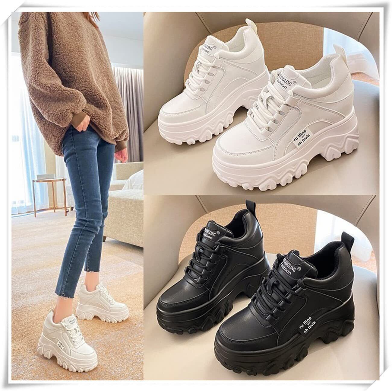 [Ainiway] 厚底スニーカー ダッドスニーカー レディース 厚底靴 スニーカー インヒール レースアップ オシャレ 人気 美脚 歩きやすい 9cm身長アップ