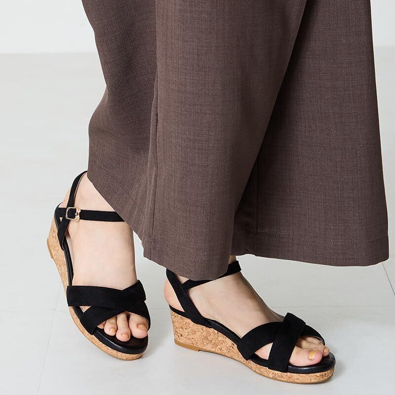[オリエンタルトラフィック] サンダル レディース ラウンドトゥ ウェッジソール 大きいサイズ 小さいサイズ 歩きやすい ストラップ クッション性 クロスデザイン 疲れにくい