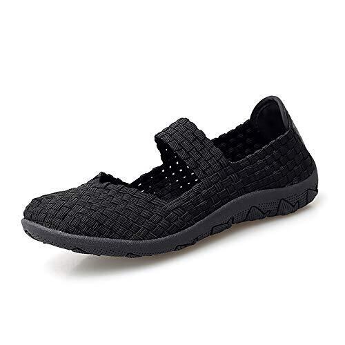 [Sunlane] レディース スリッポン スニーカー モカシン 編み込み ウーブン デッキシューズ ヴァンプ ウーブンシューズ フラット 2WAY かかと踏める パンプス アクティブシューズ サボ カジュアル ストレッチ 通気 軽量 履きやすい ブラック 24.0cm