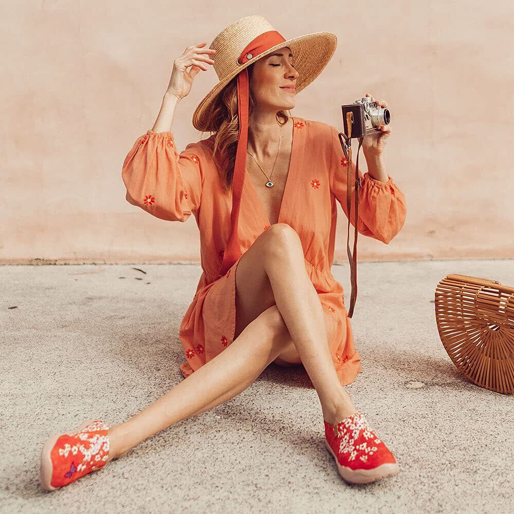 [UIN] レディースローファーフラットキャンバスシューズスリッポンボートシューズ花柄グラフィティシューズ美しい旅行シューズかかとなし軽くて快適