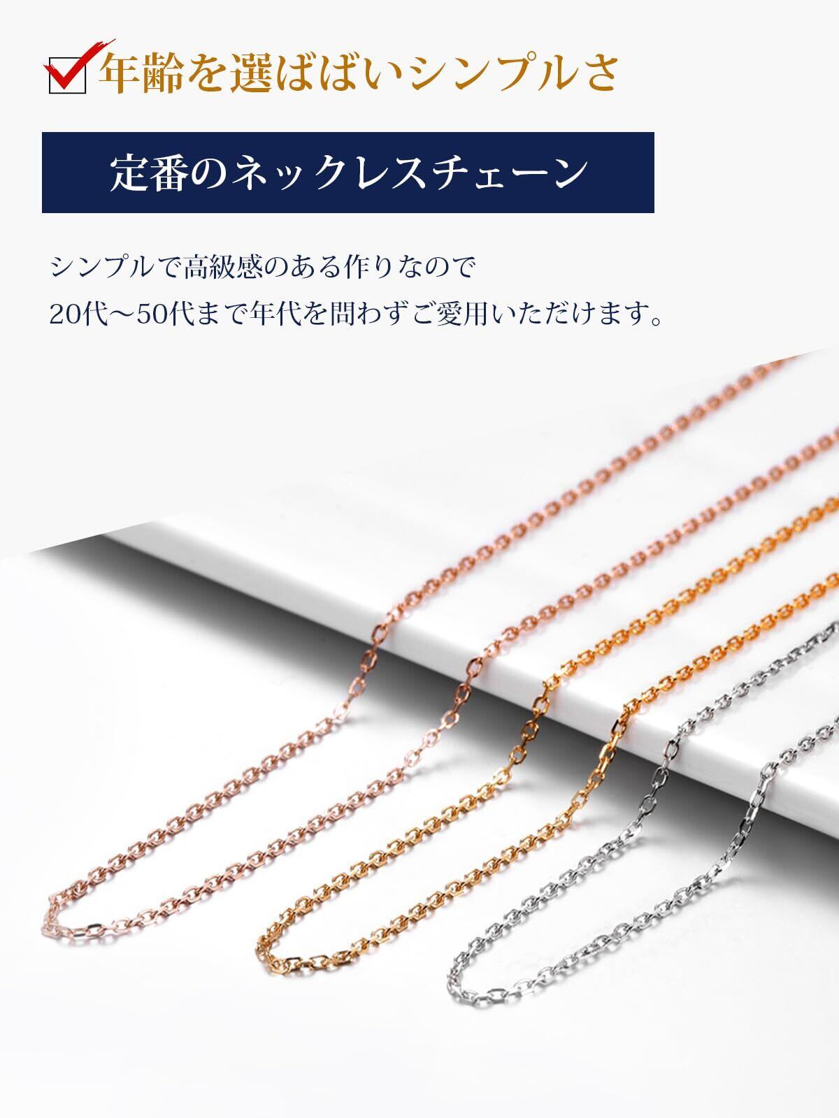 ✿[あずきチェーン] チェーンのデザインの中でも定番タイプで長年の人気を誇るあずきチェーンです。チェーンの太さは1.5mmで、長さは40cm/45cm/55cm+5cmアジャスター付きます。