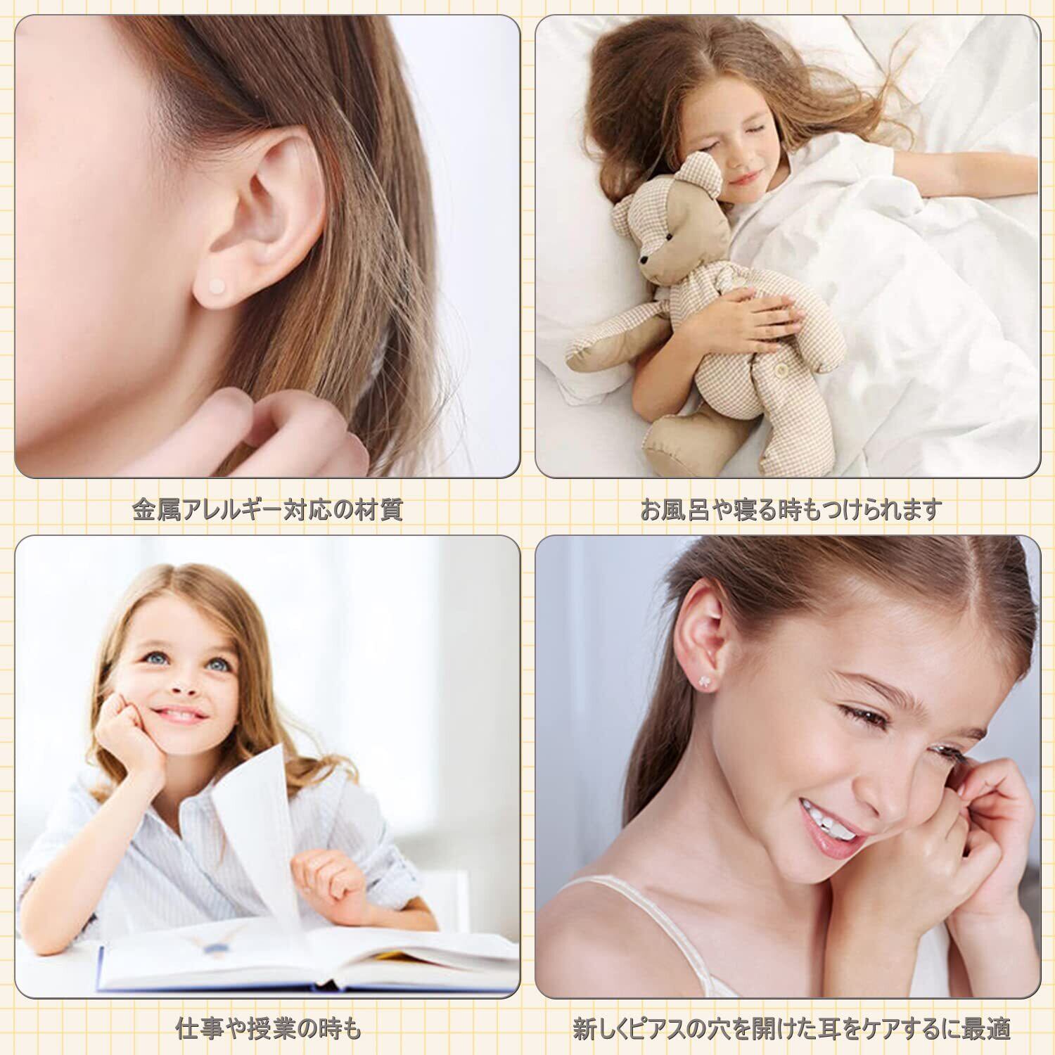 「金属アレルギー対応」ピアスキャッチで快適な装着感を体験。金属アレルギーをお持ちの方でも安心してご使用いただけるピアスキャッチです。18金の金属を包み込んだシリコン素材が肌に優しくフィットし、かゆみや赤みの心配なく、耳飾りを楽しむことができます。快適な装着感と共に、おしゃれを存分に楽しんでください。