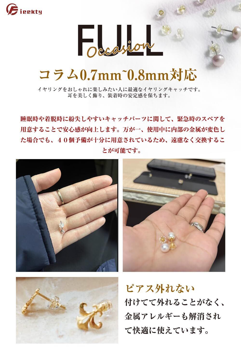 【予備として最適なキャッチセット】睡眠時や着脱時に紛失しやすいキャッチパーツに関して、緊急時のスペアを用意することで安心感が向上します。